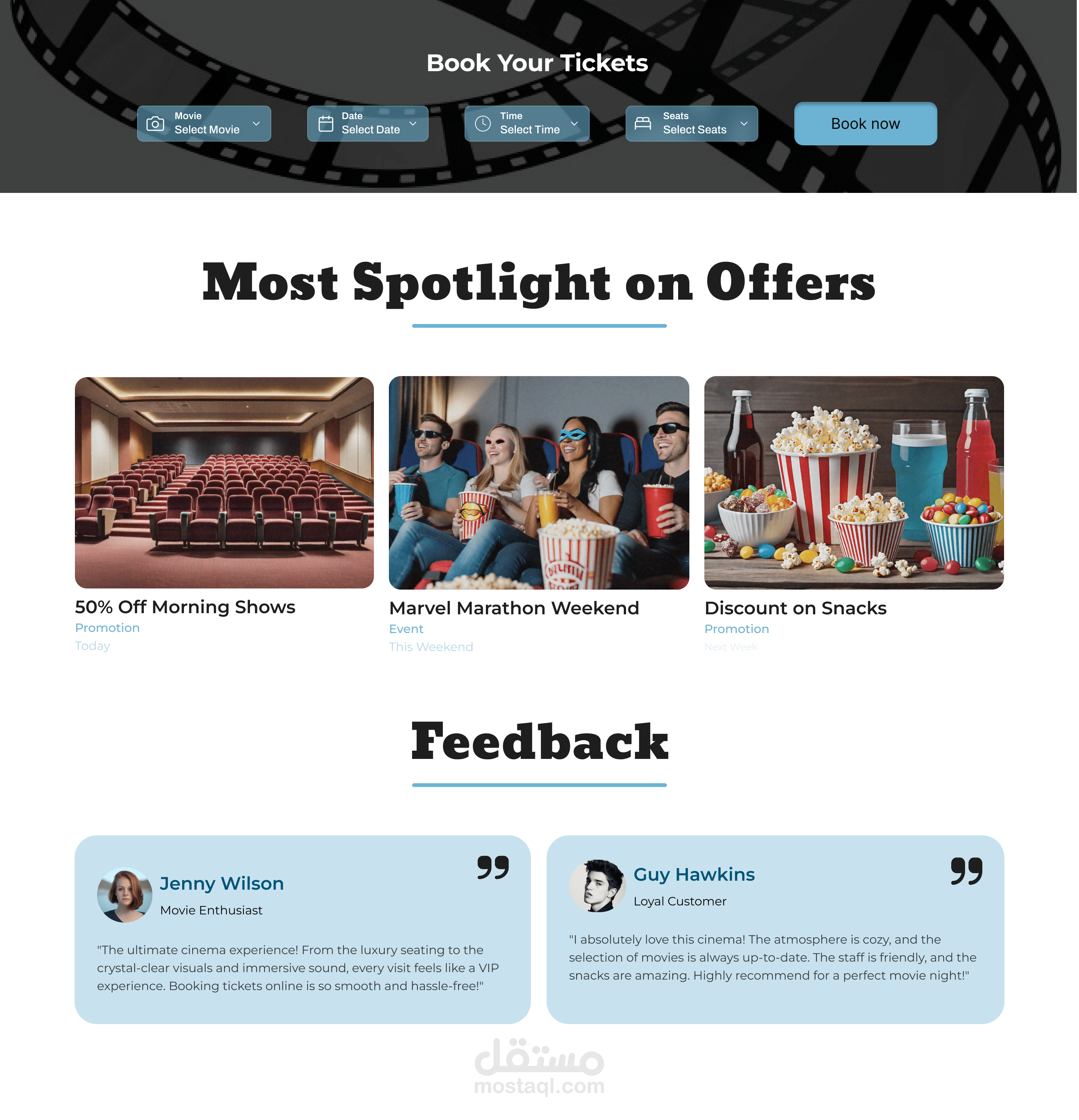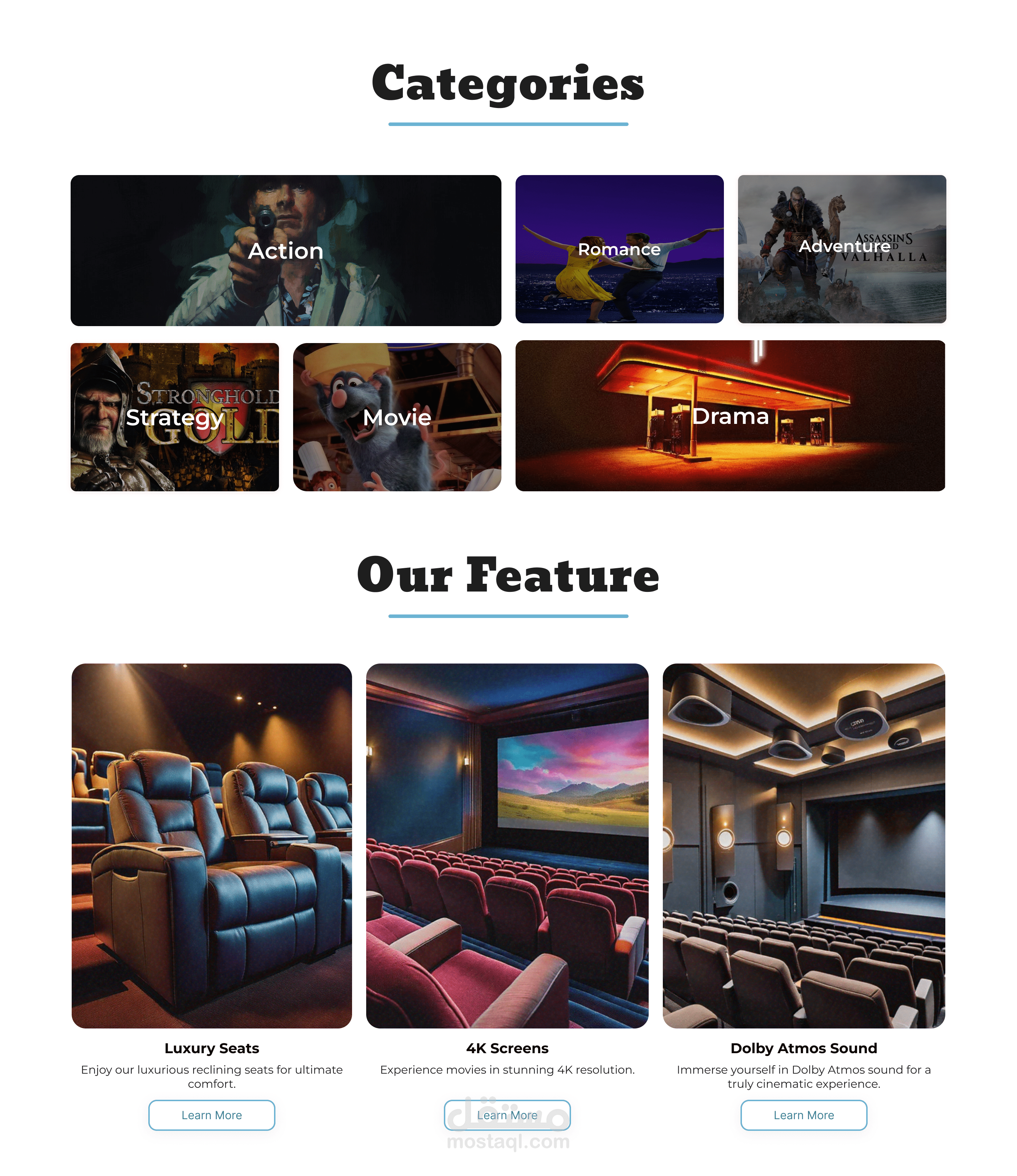 التصميم لا يركز فقط على الجمال، بل يهتم بتقديم تجربة سلسة، إنها ليست مجرد صفحة، بل بداية رحلة إلى عالم سينمائي رائع!