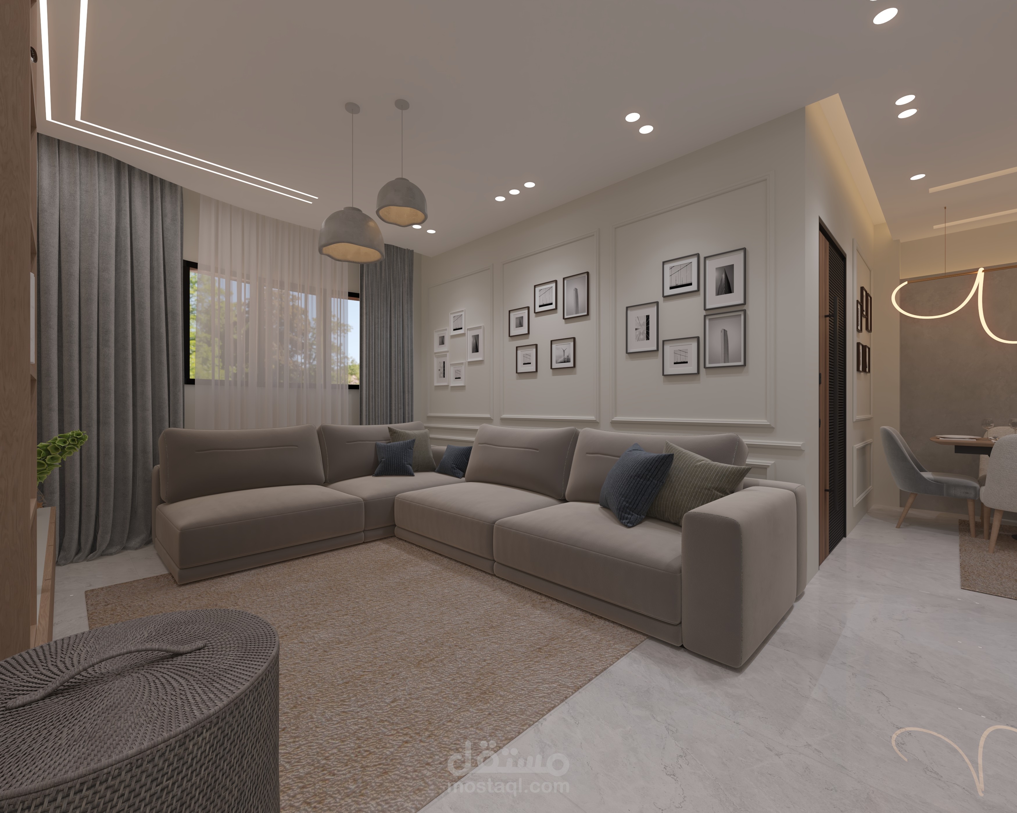 ليفينج تم في النيو كلاسيك و تم عمله بناء على رغبه العميل و متطلباته و استخدام فيه اكثر من عنصر ك البانوهات و جبس الحائط ذو الطابع الرائع في التنفيذ
