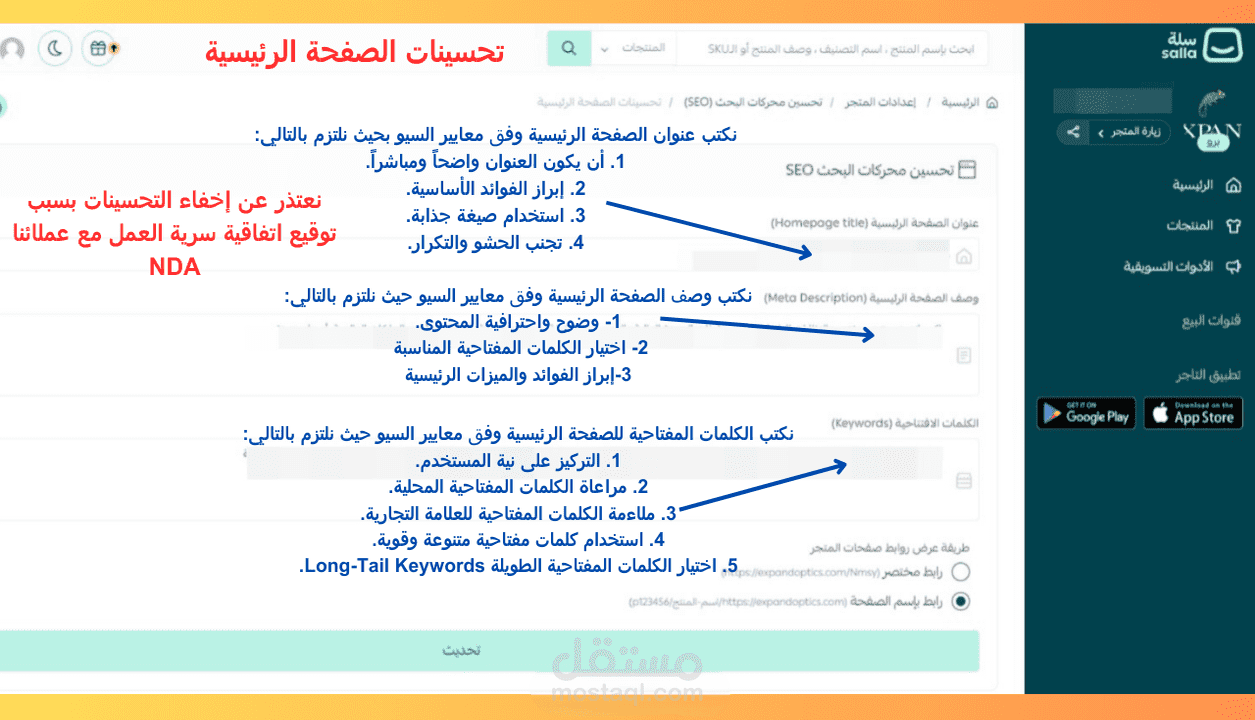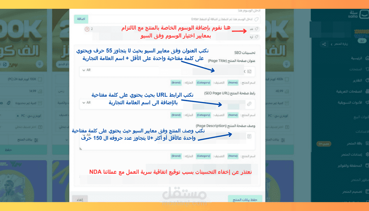 مساعدتك في زيادة أرباح متجرك الإلكتروني من خلال تحسين أداء متجر منصة سلة، بالإضافة إلى تطبيق استراتيجيات فعّالة في تحسين محركات البحث (SEO) لزيادة الظهور وجذب العملاء. هدفي هو تحسين نتائجك التجارية وتعظيم ربحك باستخدام أحدث تقنيات السيو والخطط التسويقية المتقدمة.