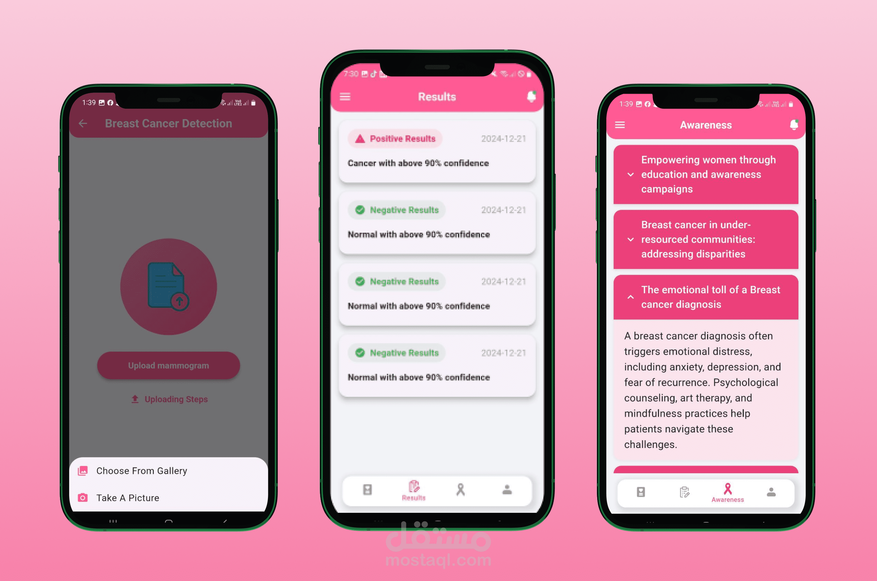 تطبيق سرطان الثدي تم تطويره باستخدام تقنيات Flutter وFirebase وAPI المتطورة، يهدف إلى تشخيص سرطان الثدي بدقة من خلال تحليل صور أنسجة الثدي باستخدام الذكاء الاصطناعي. يتميز التطبيق بالعديد من الميزات التي توفر تجربة شاملة وداعمة للمستخدمين: