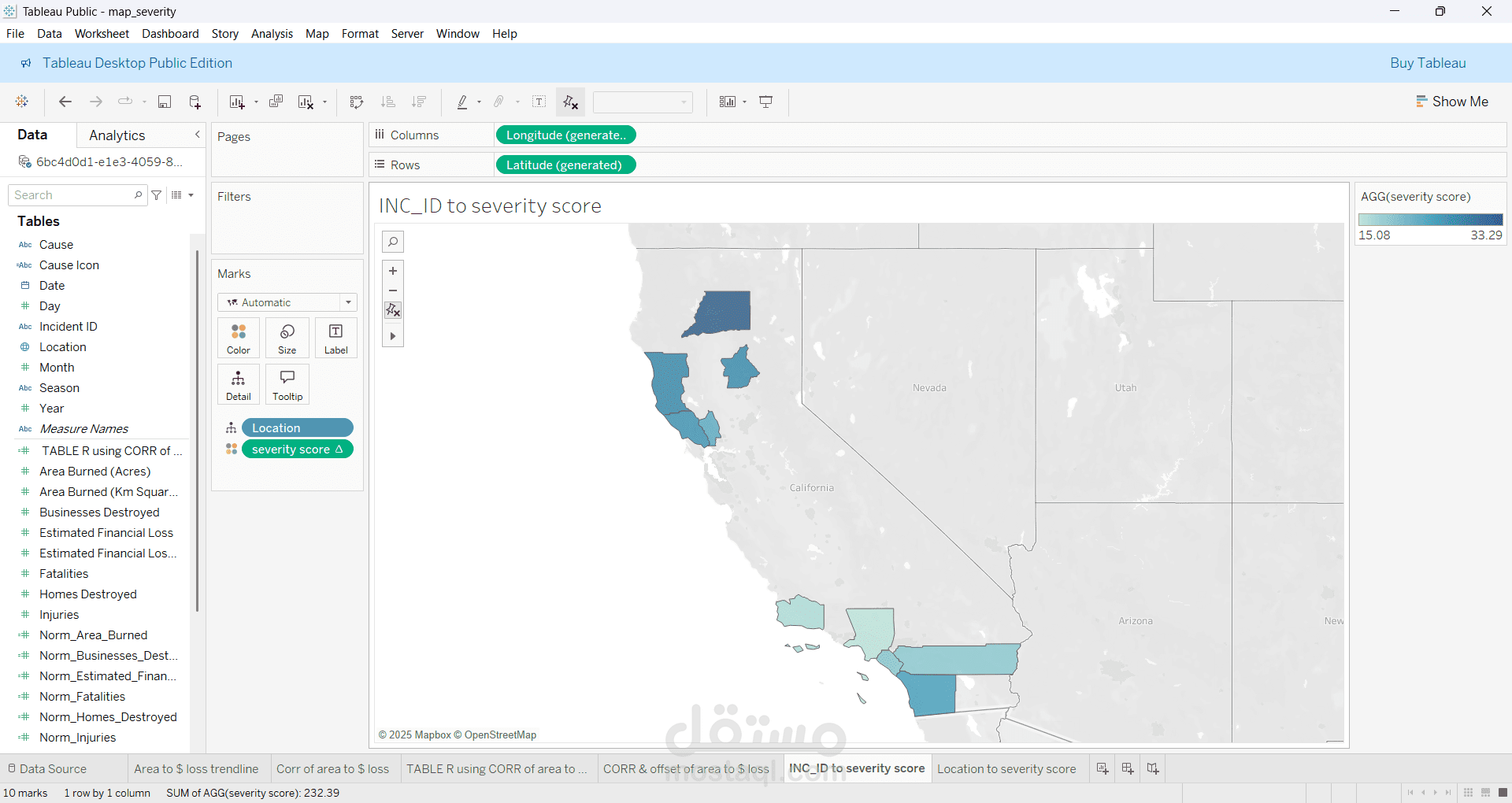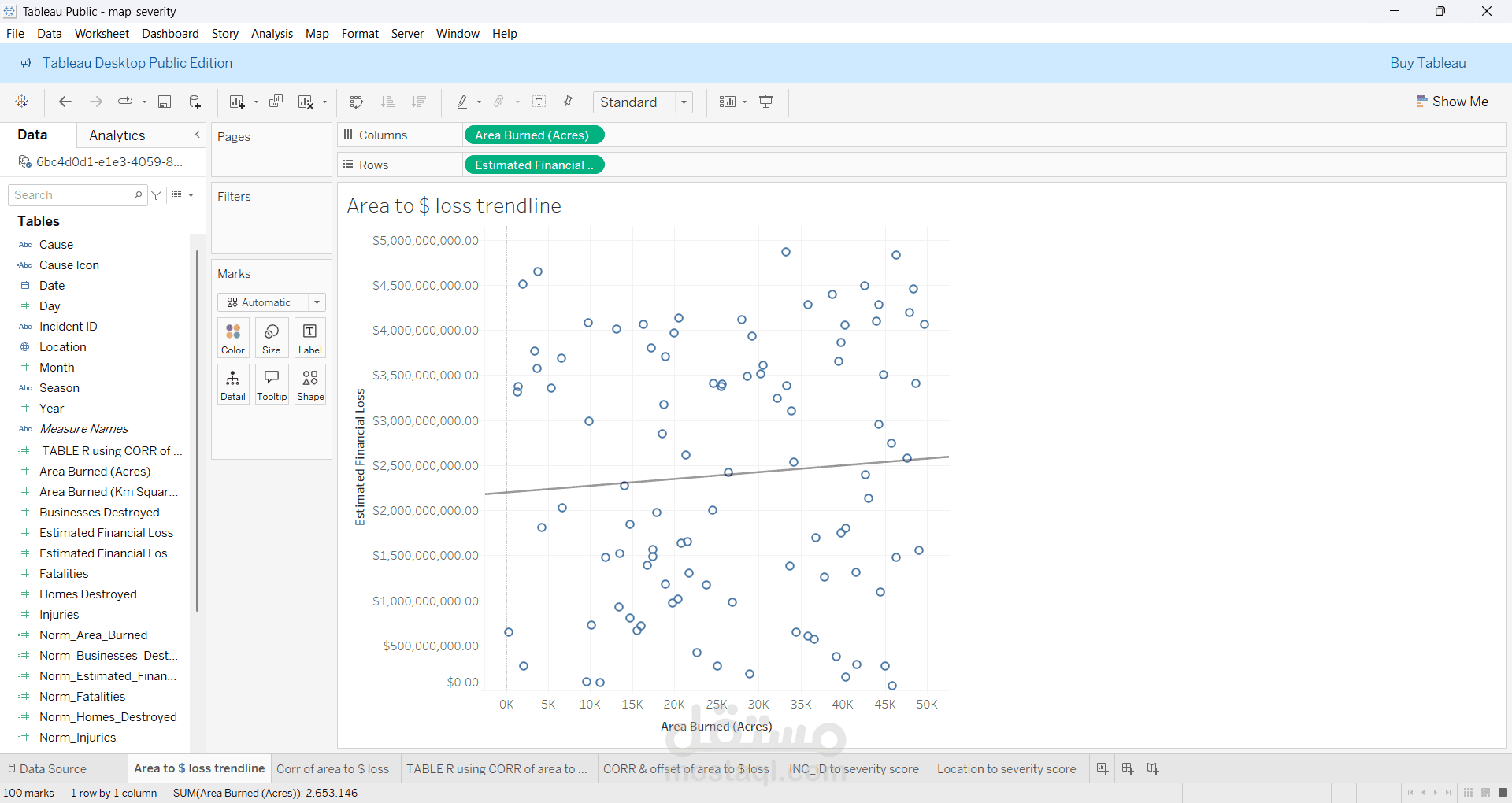 تحليل لحرائق كاليفورنيا باستخدام Tableau