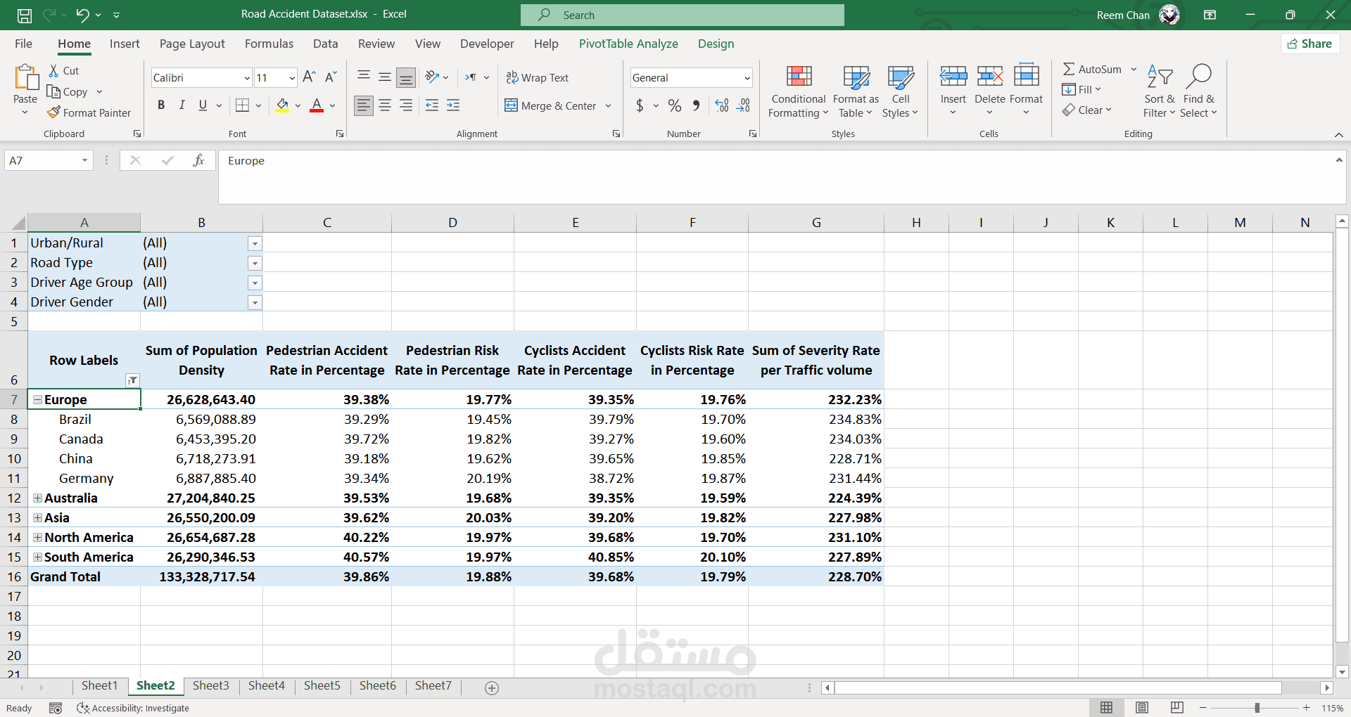 تحليل حوادث الطرق باستخدام اكسيل