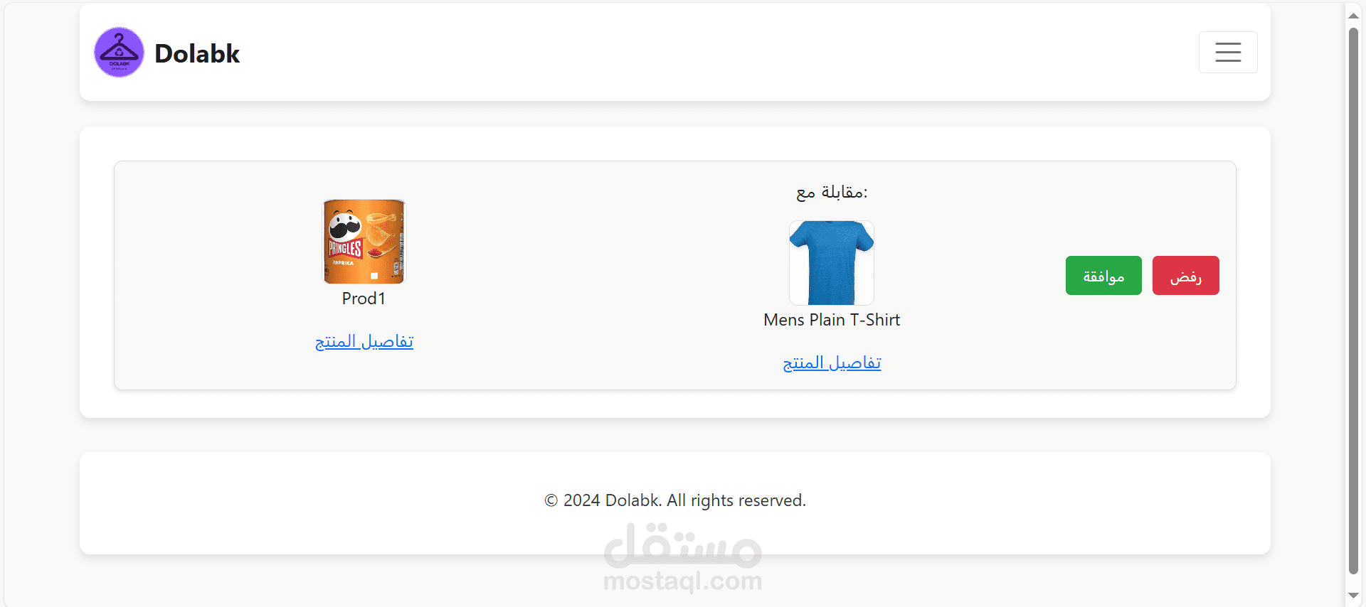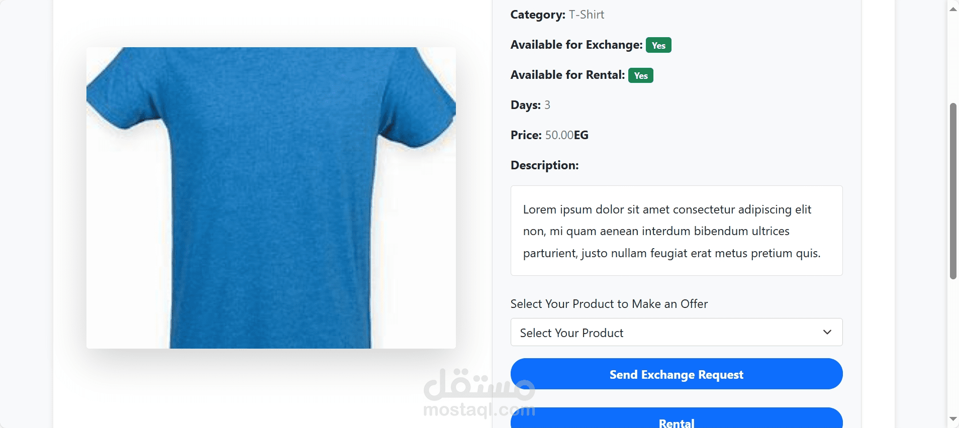 هو تطبيق يعمل علي تبادل و ايجار الملابس عن طرق رفع المنتج الخاص بيك وتحدد اذا كان للإيجار او للتبادل ومن ثم تنظر عرض من احد اعجبه المنتج الخاص بيك لو لتبديل ياتي لك اشعار بيوضح لك العرض المنتج المعروض مقابل منتجك و تختار الموافقة او الرفض اذا تم الموافقة يحدد لك موعد لمجيء الدريفري ليستلم منك المنتج وسوف يسلمك المنتج المقابل و في الايجار اذا قام احد بالاعجاب بالمنتج يقوم بارسال اشعار بالان يريد تاجير منتجك وسوف ياتي الايك الدريفري في الوقت المحدد .
