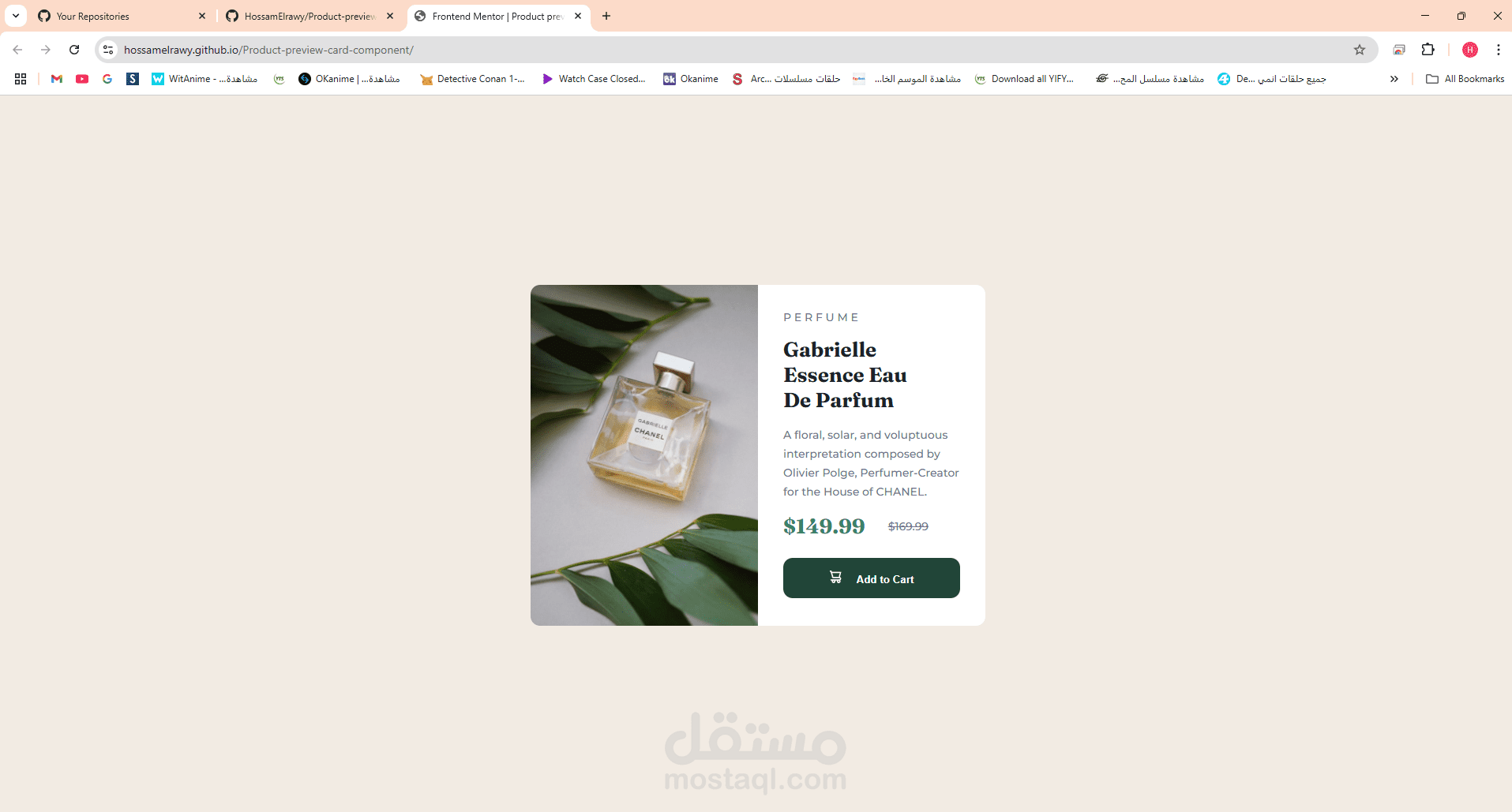 This project is a responsive product preview card component built with HTML and CSS. It displays a product image, name, description, pricing, and an "Add to Cart" button. The layout is designed to adjust seamlessly for both desktop and mobile screens, making it perfect for e-commerce websites or product landing pages.