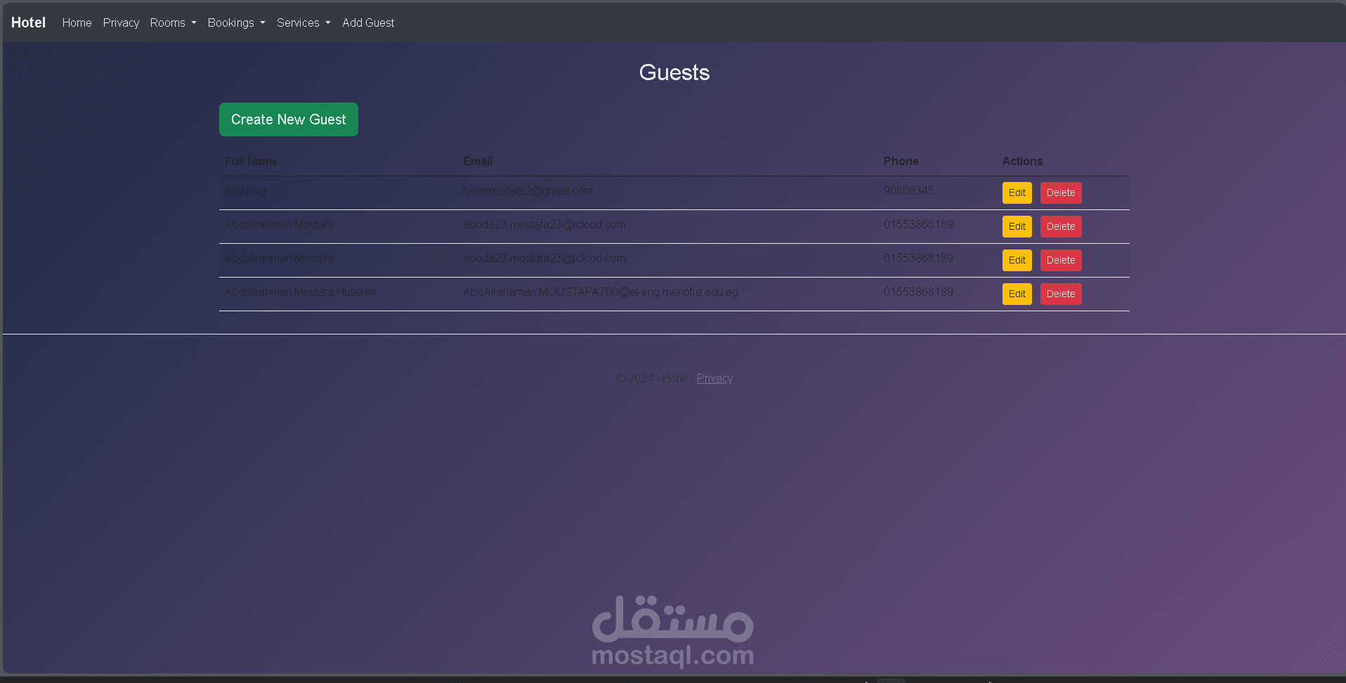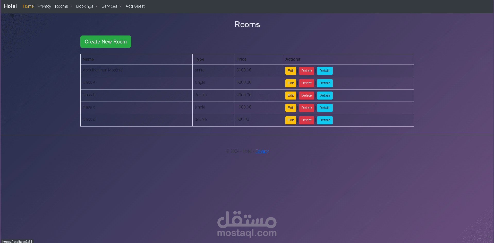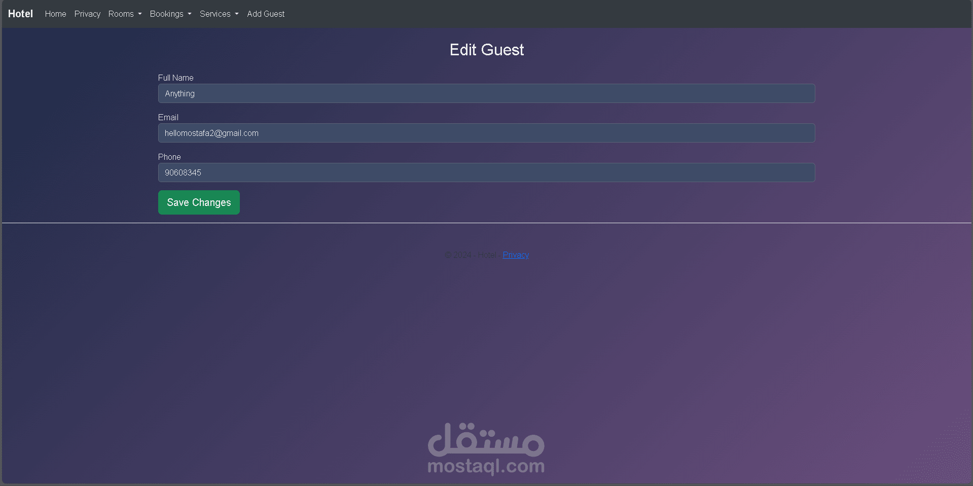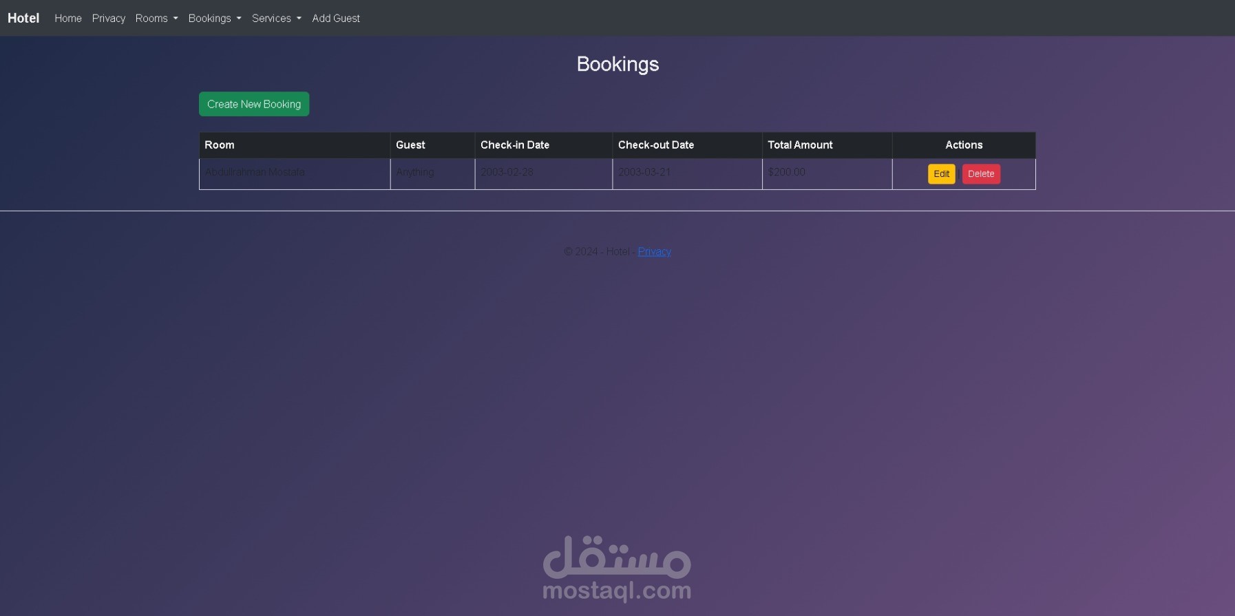 This project is a Hotel Management System developed using the Model-View-Controller (MVC) architectural pattern. It provides a comprehensive platform for managing various aspects of a hotel, including room bookings, guest information, and services. The system is designed to streamline hotel operations and enhance the user experience for both staff and guests.
