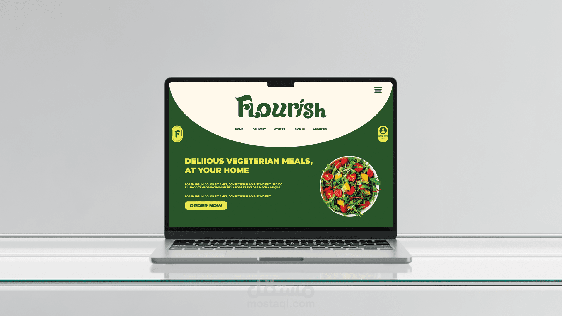 مشروع "Flourish" لهوية وشعار علامة تجارية للأطعمة النباتية