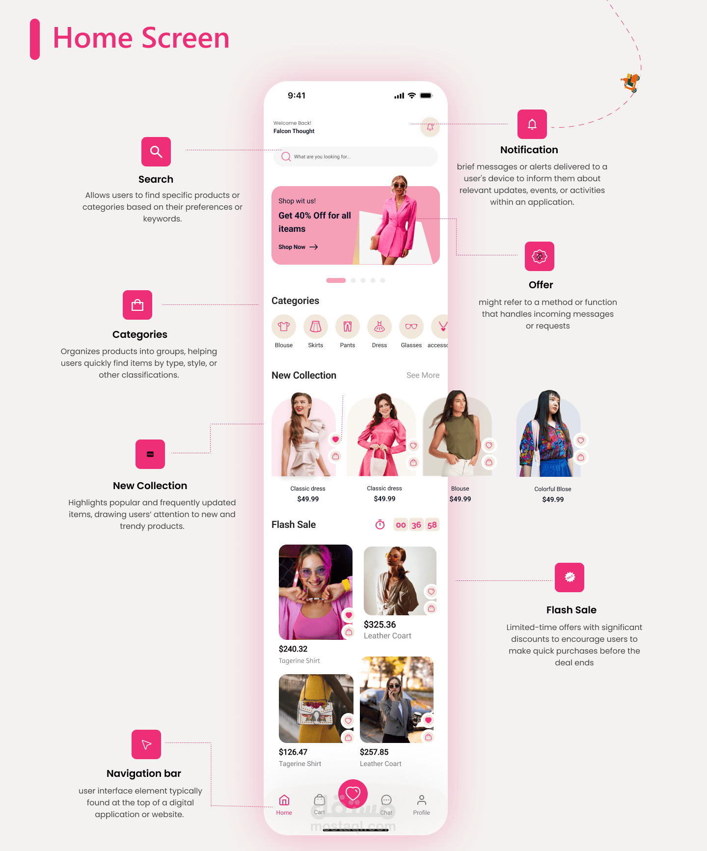 ركز التصميم على تلبية احتياجات المستخدمات من خلال تجربة تصفح خالية من التعقيد مع تحسين الجانب البصري لزيادة التفاعل.