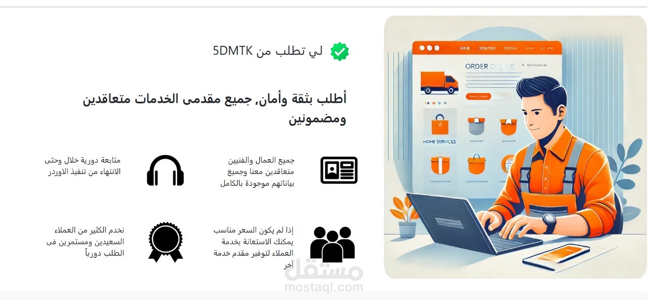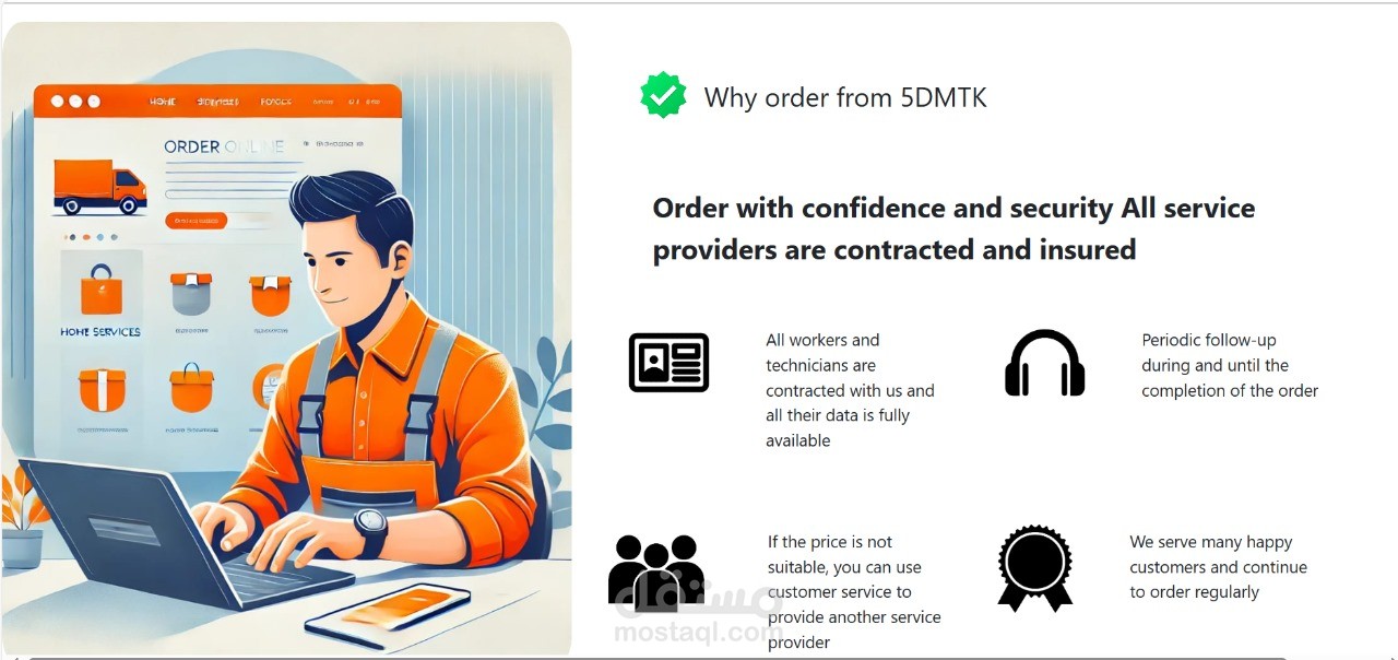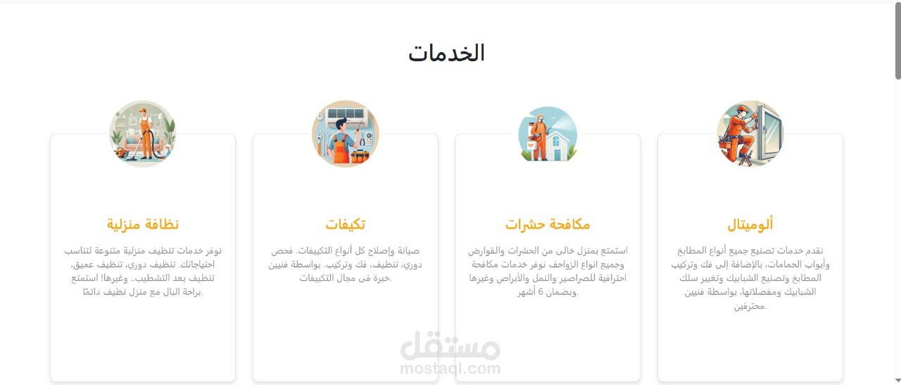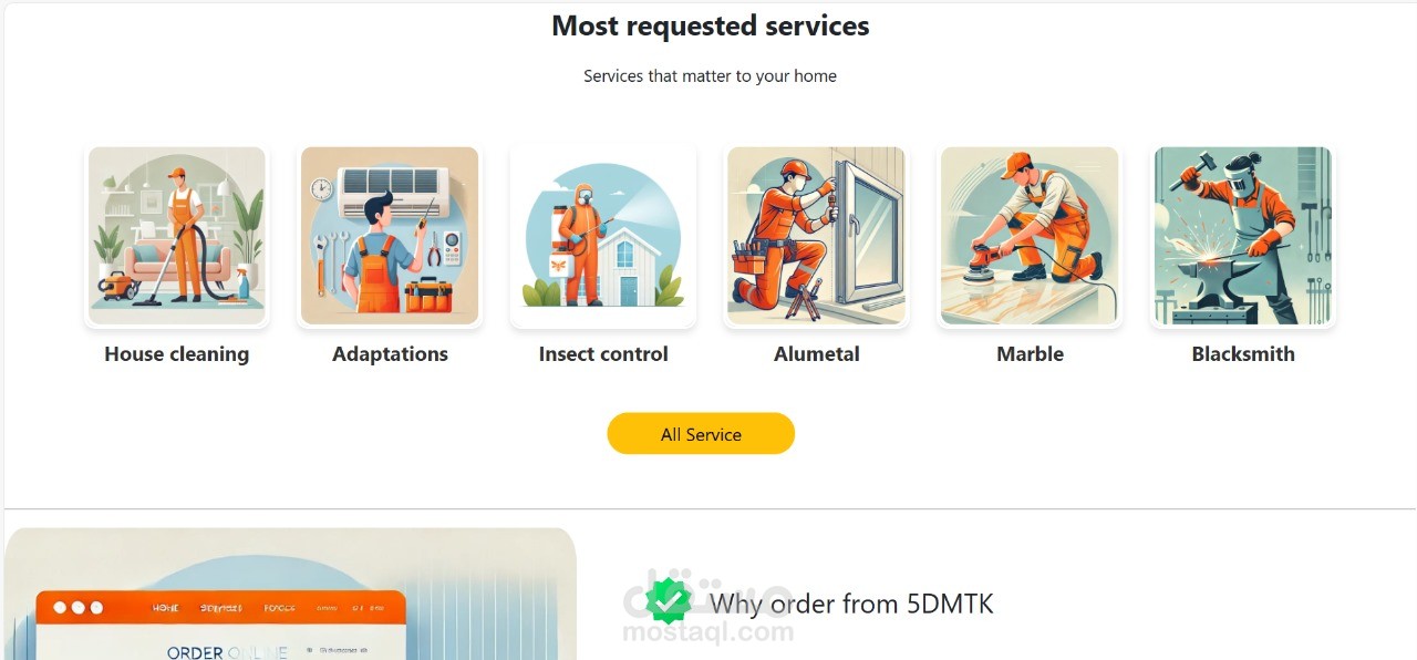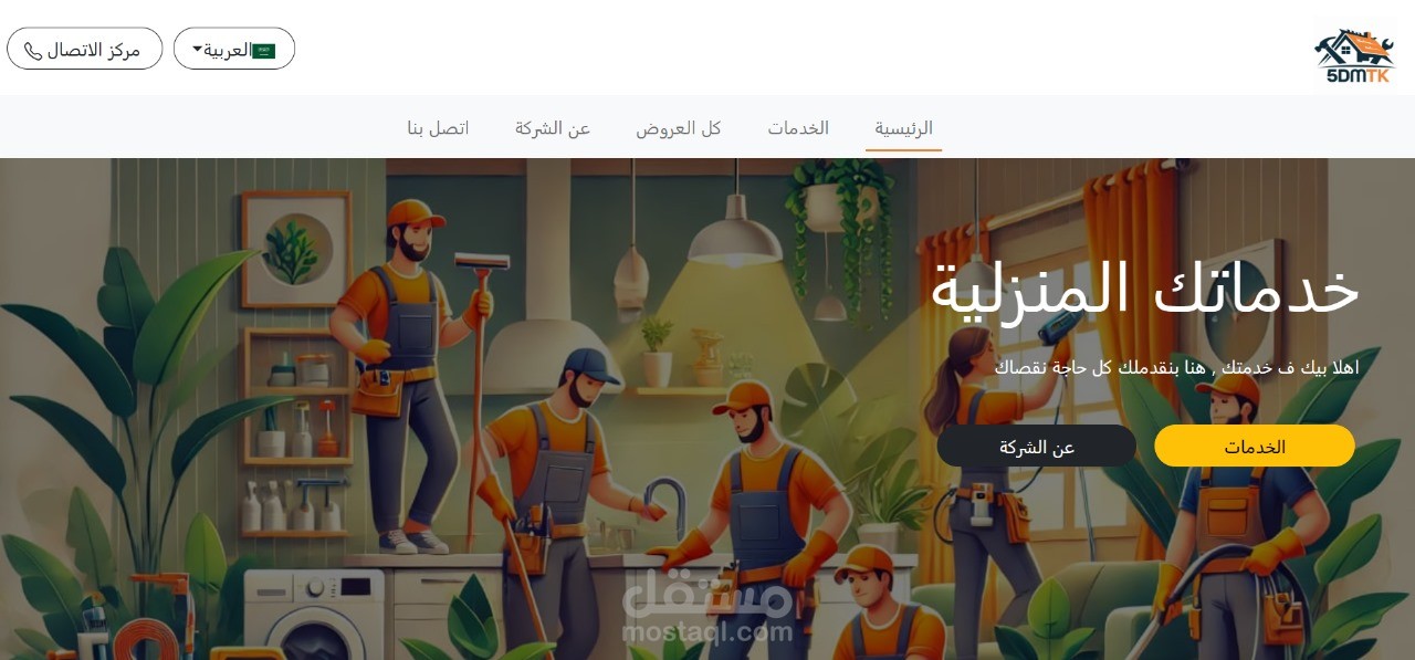 موقع خدمات منزلية حيث تم التعاقد مع صيانة الخدمات المنزلية و يمكن للعميل طلب لخدمة التي يريدها عن طريق ال call center وسيتم ارسالها له في اقرب وقت