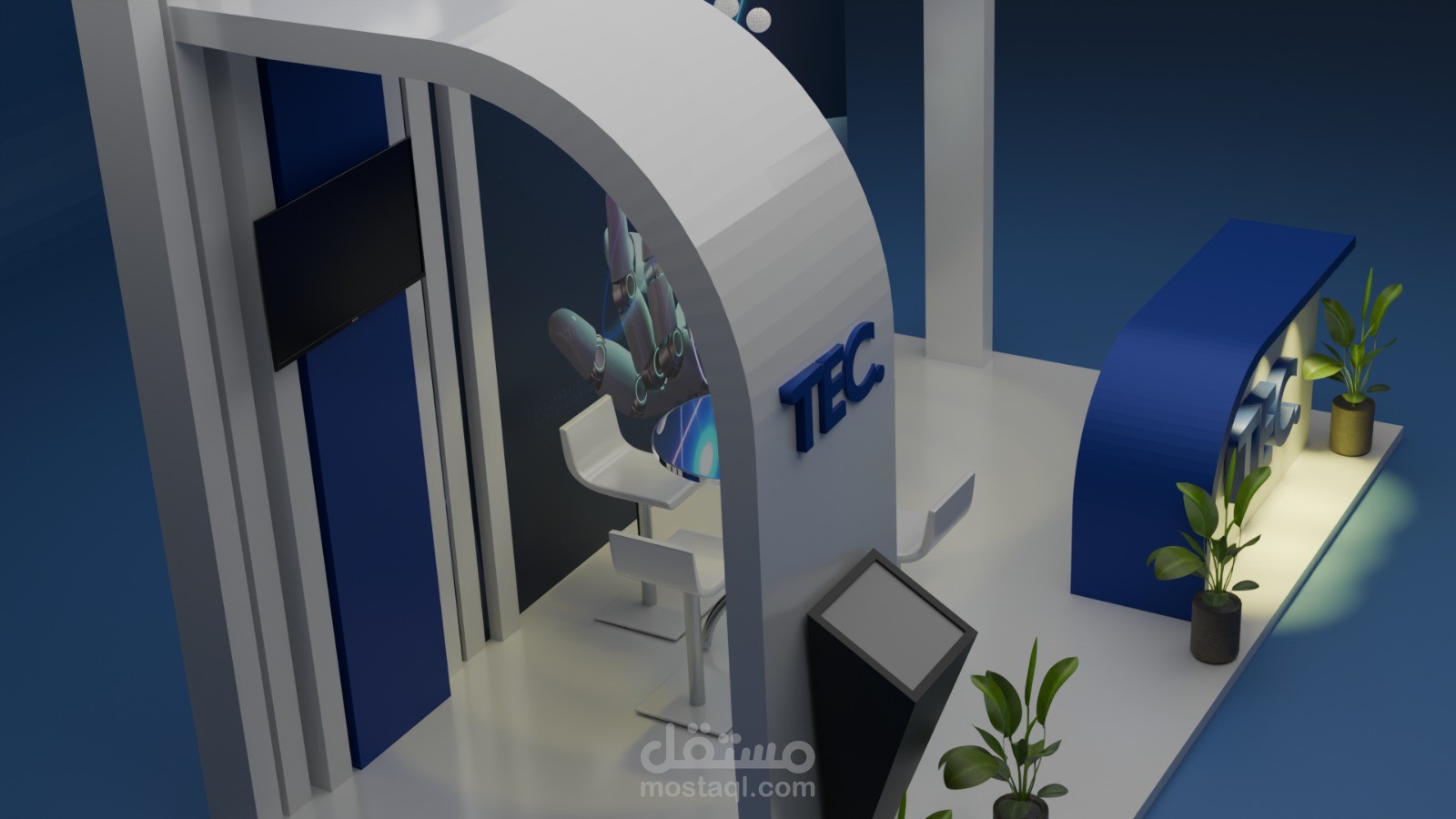تصميم جناح معرض ثلاثي الابعاد على برنامج بليندر .. الاهتمام بالتيكشر والريندر والاضاءة