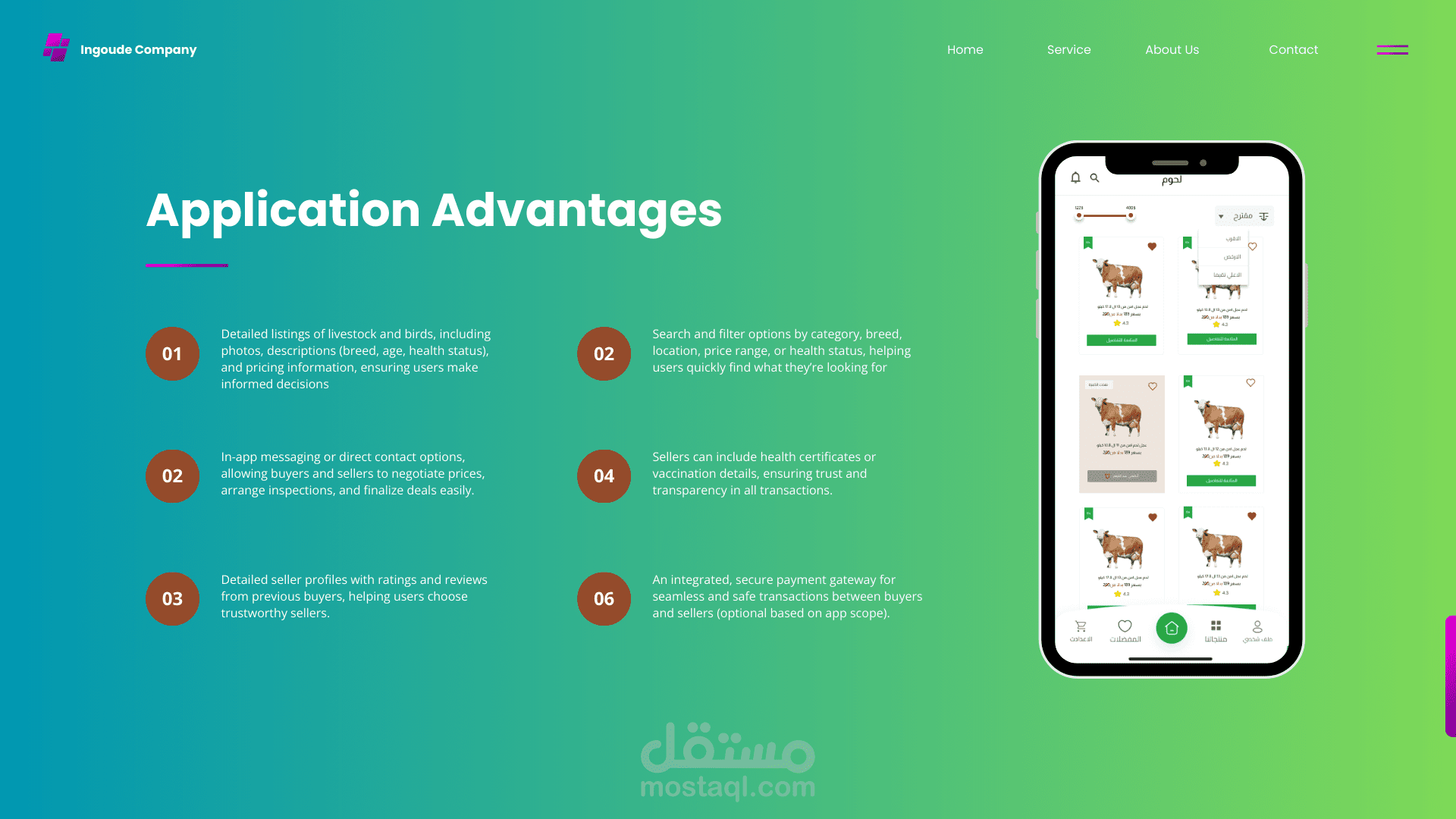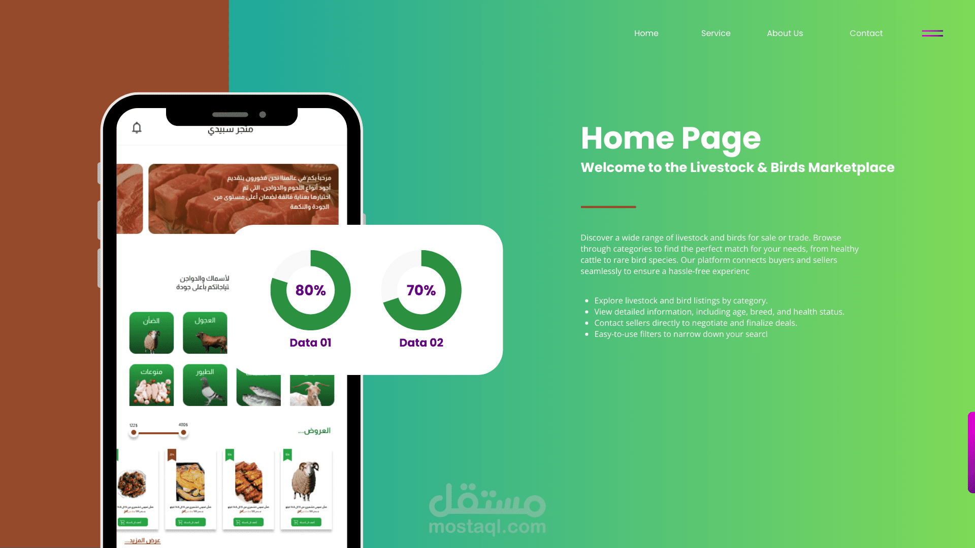 يهدف تطبيقل Globa Meat إلى تقديم تجربة مميزة للمستخدمين من خلال توفير منصة شاملة لبيع وشراء الماشية والطيور. يتيح التطبيق للمستخدمين استعراض الإعلانات بسهولة واختيار الأنسب لاحتياجاتهم من بين مجموعة متنوعة من الخيارات، مع تفاصيل دقيقة تشمل النوع، العمر، الحالة الصحية، والأسعار.