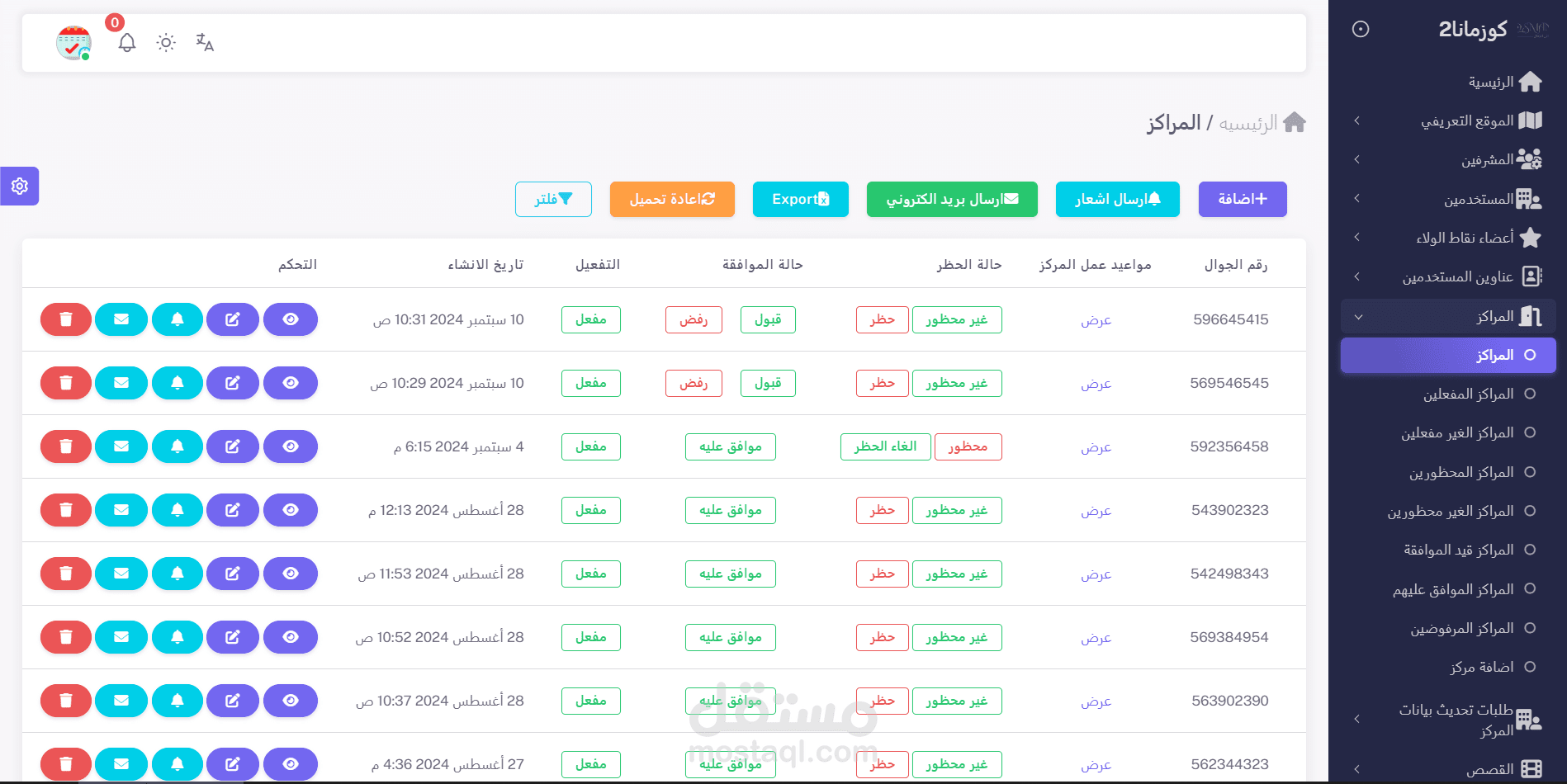 يوفر التطبيق لوحة تحكم سهلة الاستخدام لأصحاب المراكز، تتيح لهم إدارة معلوماتهم وخدماتهم بكل كفاءة.