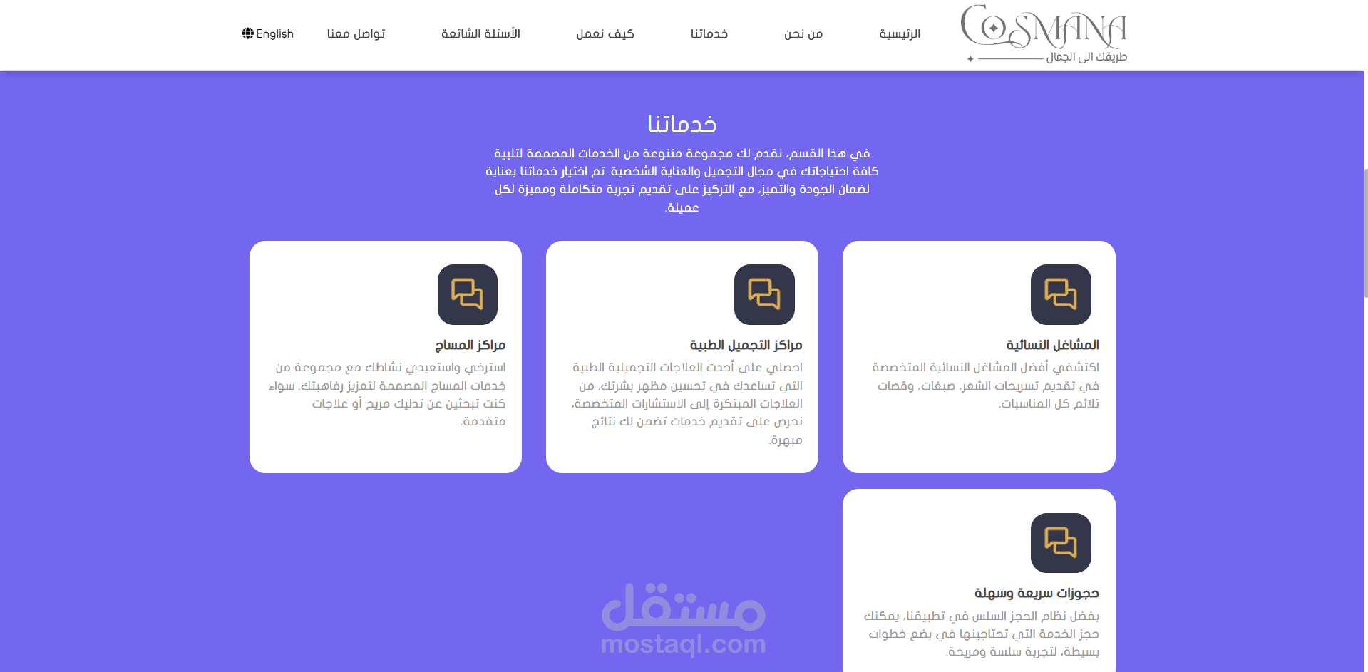 كوسمانا هو تطبيق مبتكر يهدف إلى تقديم منصة متكاملة للعناية بجمال المرأة، ويشمل الخدمات التالية: