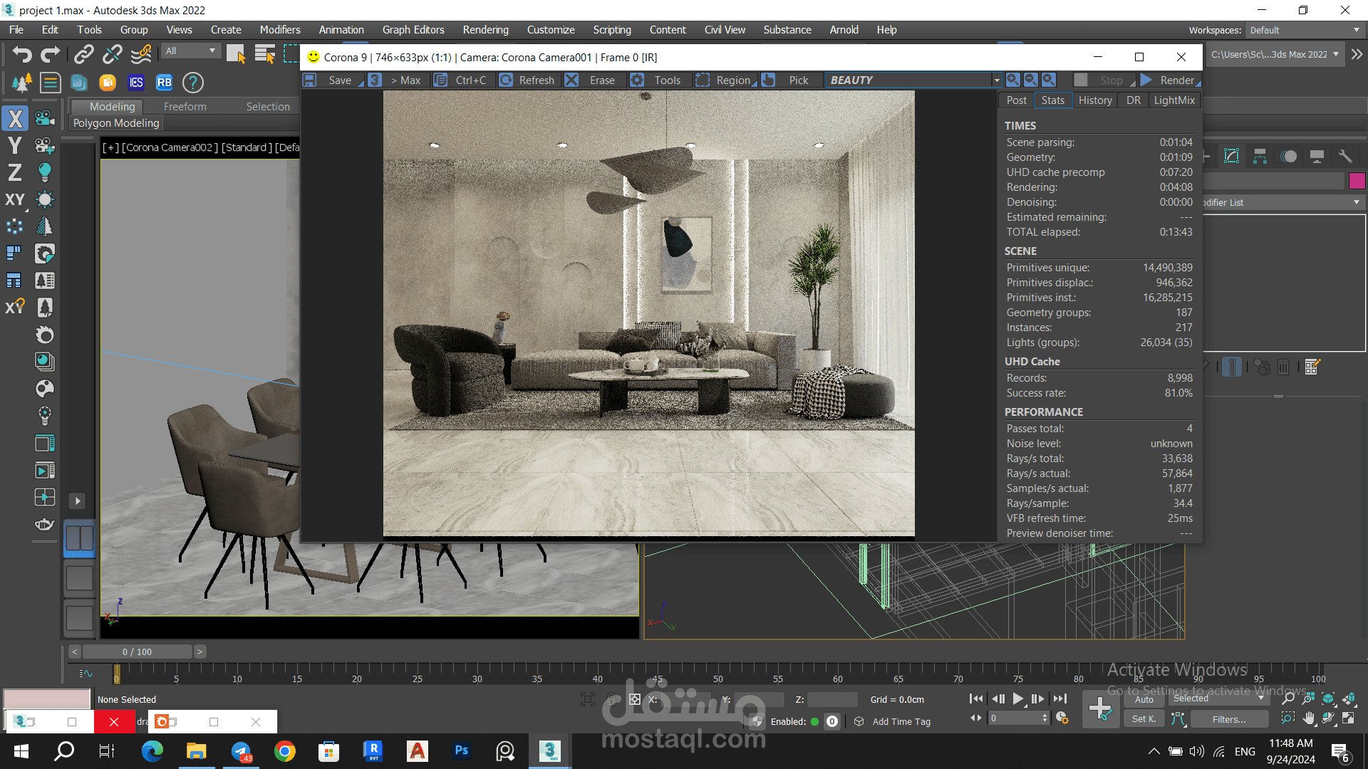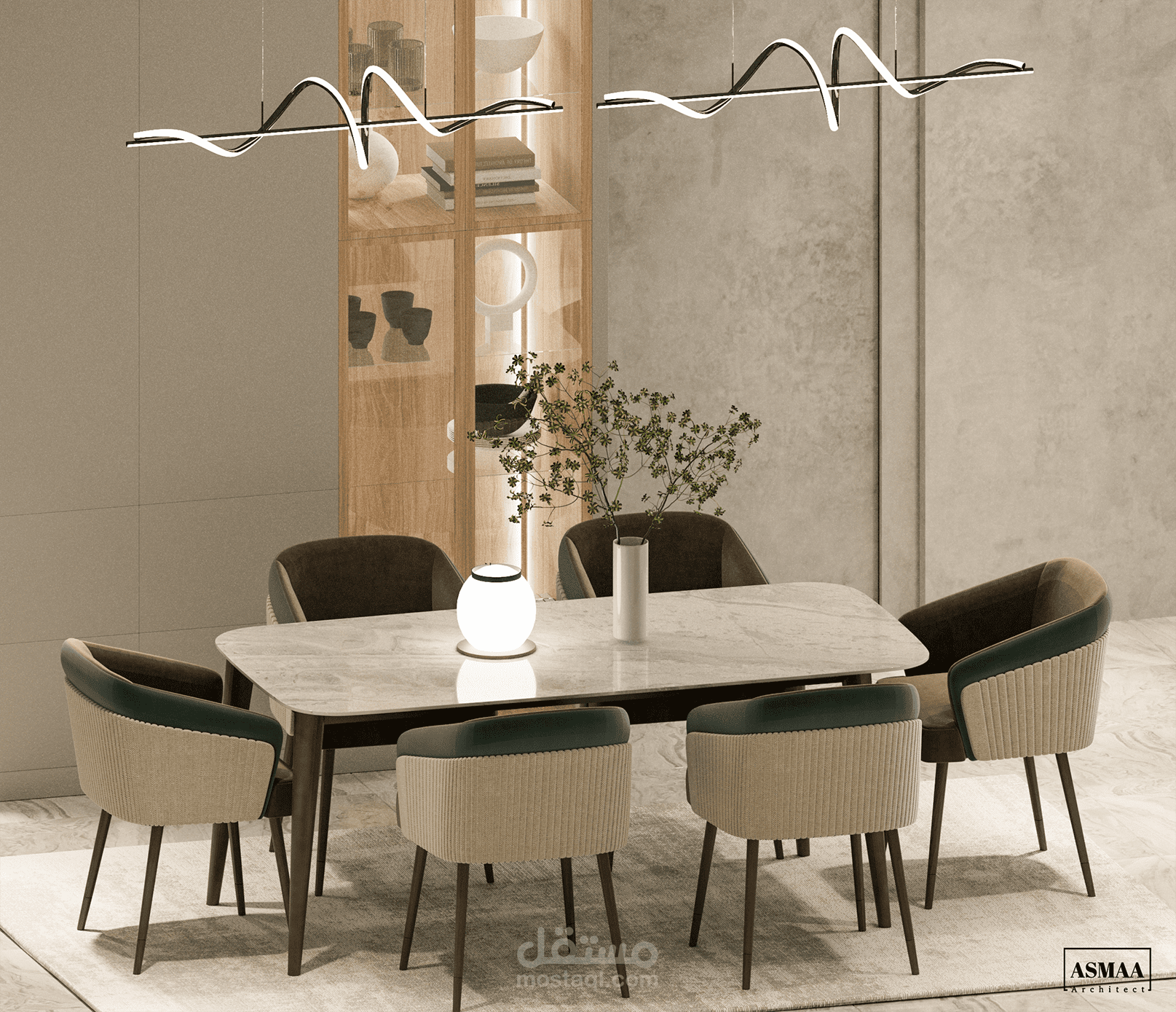 تمت الاستعانة بمحرك Corona Renderer لتصيير التفاصيل مع إظهار الإضاءة الطبيعية والظلال الواقعية.