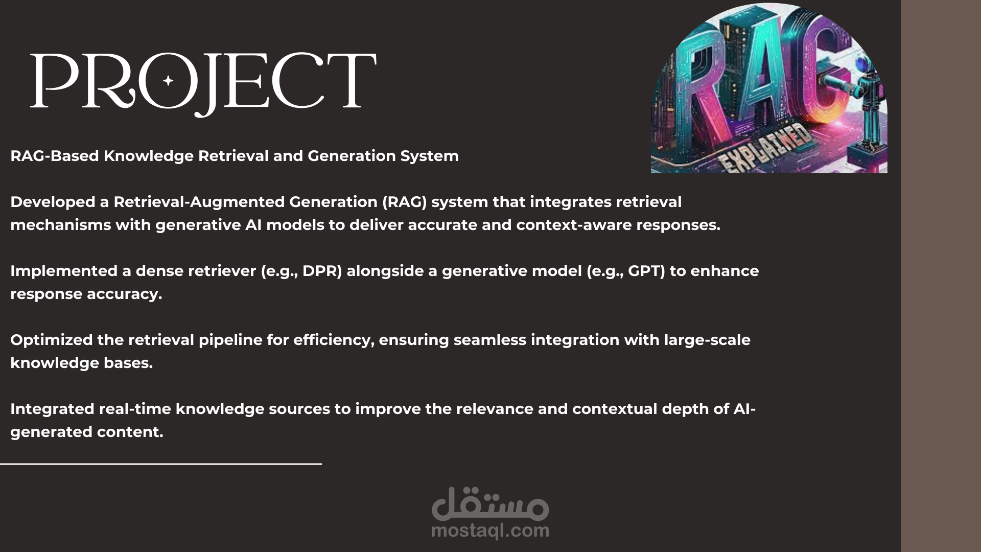 نظام استرجاع المعرفة المدعوم بالذكاء الاصطناعي (RAG) – لتحسين استرجاع المعلومات وتوليد المحتوى الذكي.
