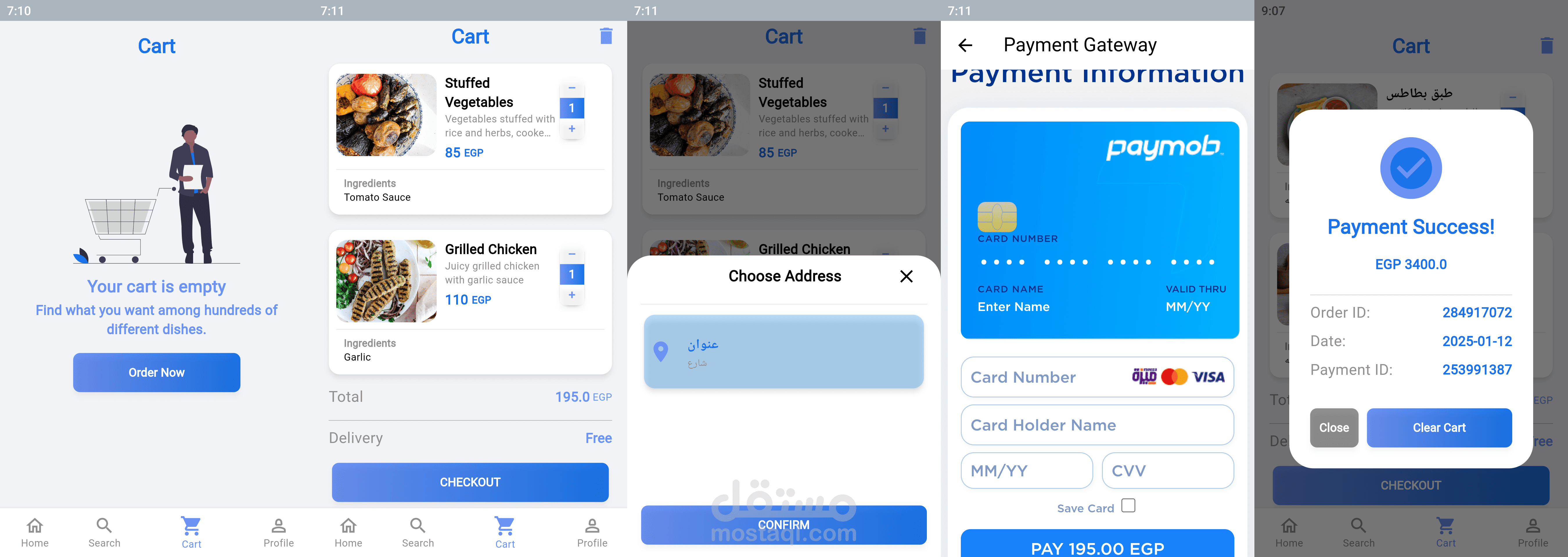 تطبيق Flutter متكامل ومُصمم بدقة يهدف إلى توفير تجربة ممتازة لطلب وتوصيل الطعام، مع دعم خيارات تسجيل الدخول الآمنة، وعربة تسوق ذكية، وتكامل Firebase لإدارة البيانات بكفاءة مثل الأطعمة، العروض، والطلبات. كما يتيح للمستخدمين تتبع الطلبات، وإتمام الدفع بسلاسة عبر بوابة PayMob الآمنة.