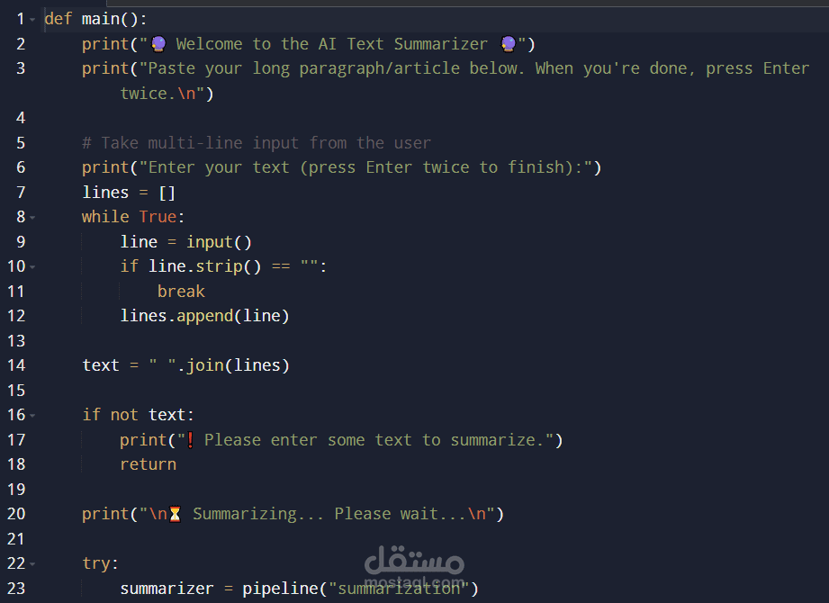 Build an AI-powered Text Summarizer Web App that can automatically summarize long texts into short, clear, and informative summaries. This tool is useful for students, researchers, bloggers, and anyone dealing with large content. The app has a clean and interactive web interface built using Streamlit and uses the HuggingFace Transformers library to generate high-quality summaries. The solution is lightweight, easy to use, and can be run on any device or browser using an online compiler like Programiz.