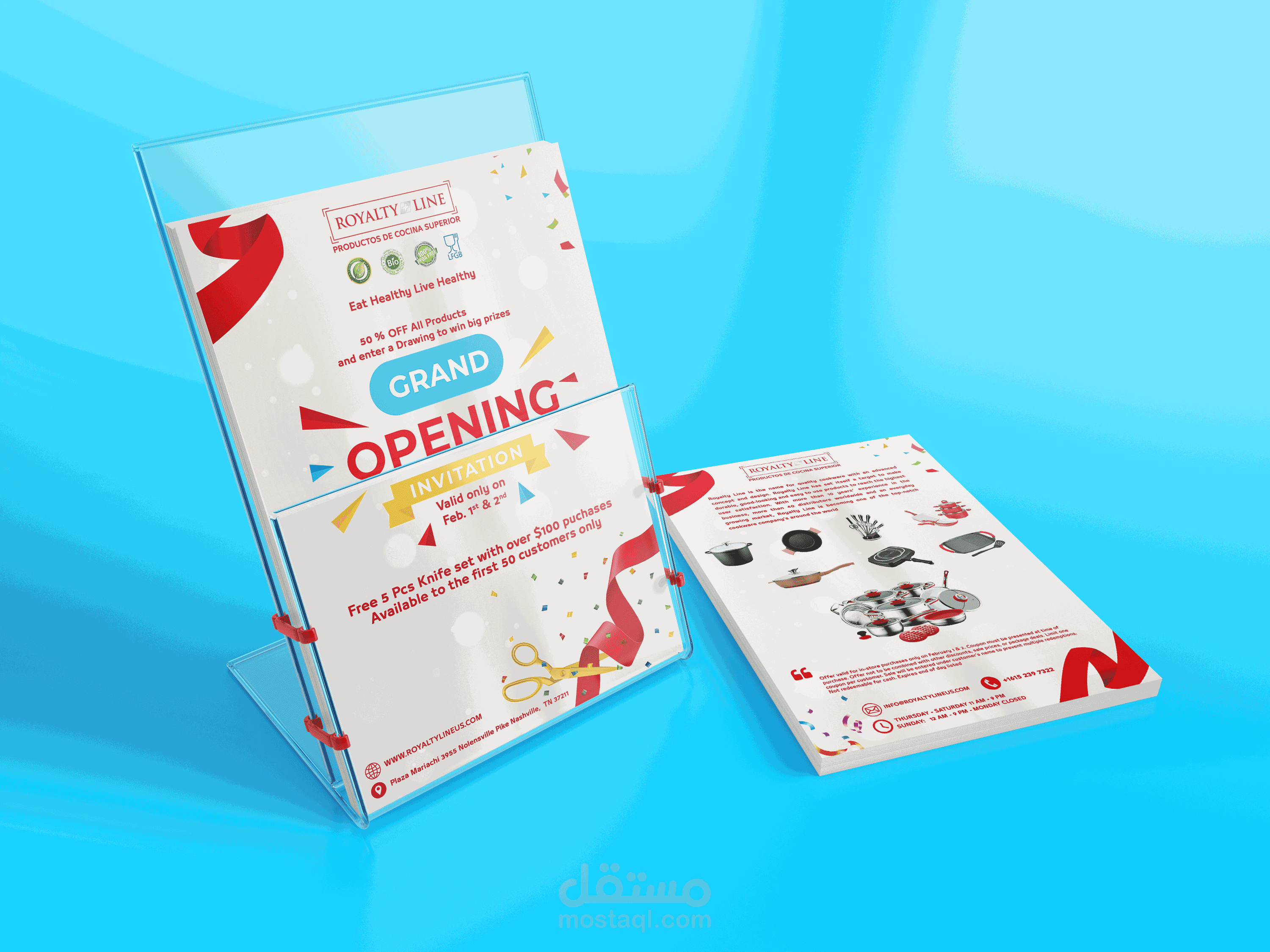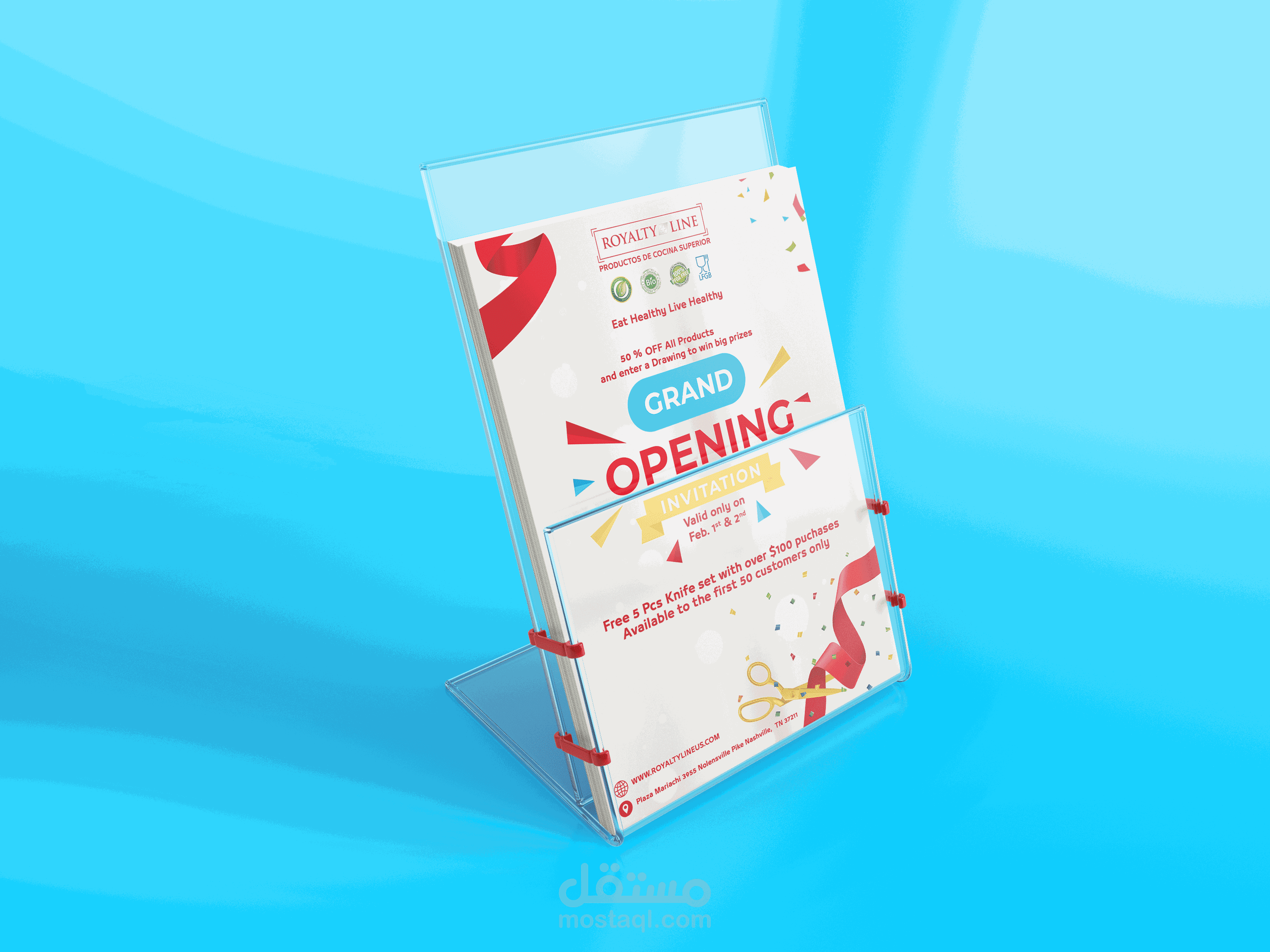دعوة الإفتتاح لأحد المحلات الخاصة ببيع منتجات شركة رويالتى لاين الشهيرة بالولايات المتحدة الأمريكية.