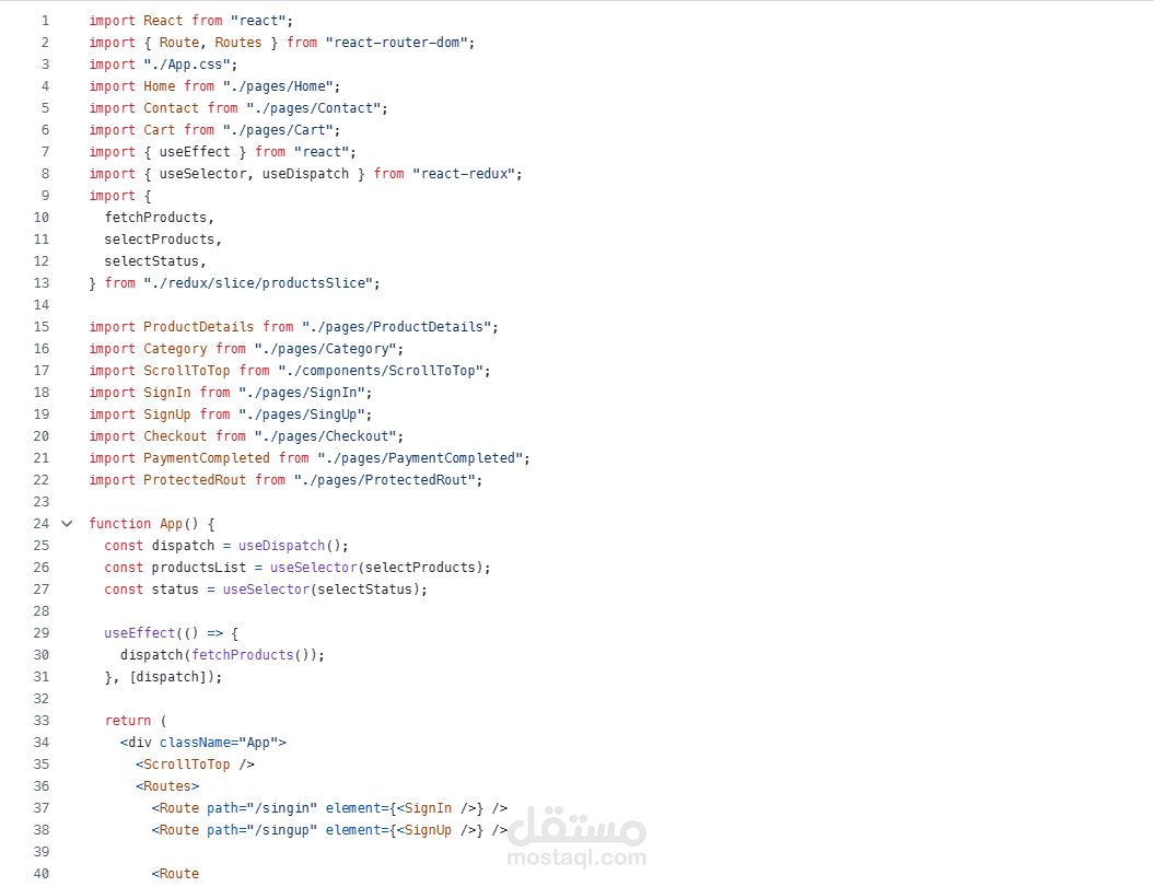 إدارة الحالة (State Management): باستخدام Redux Toolkit لتحسين إدارة الحالة داخل التطبيق.