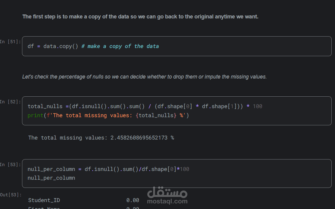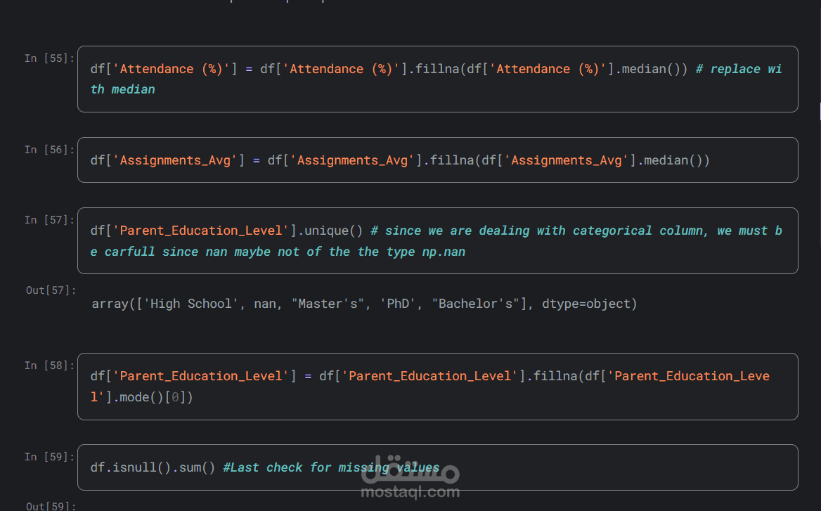 Handle missing values using appropriate techniques (e.g., imputation, removal).
