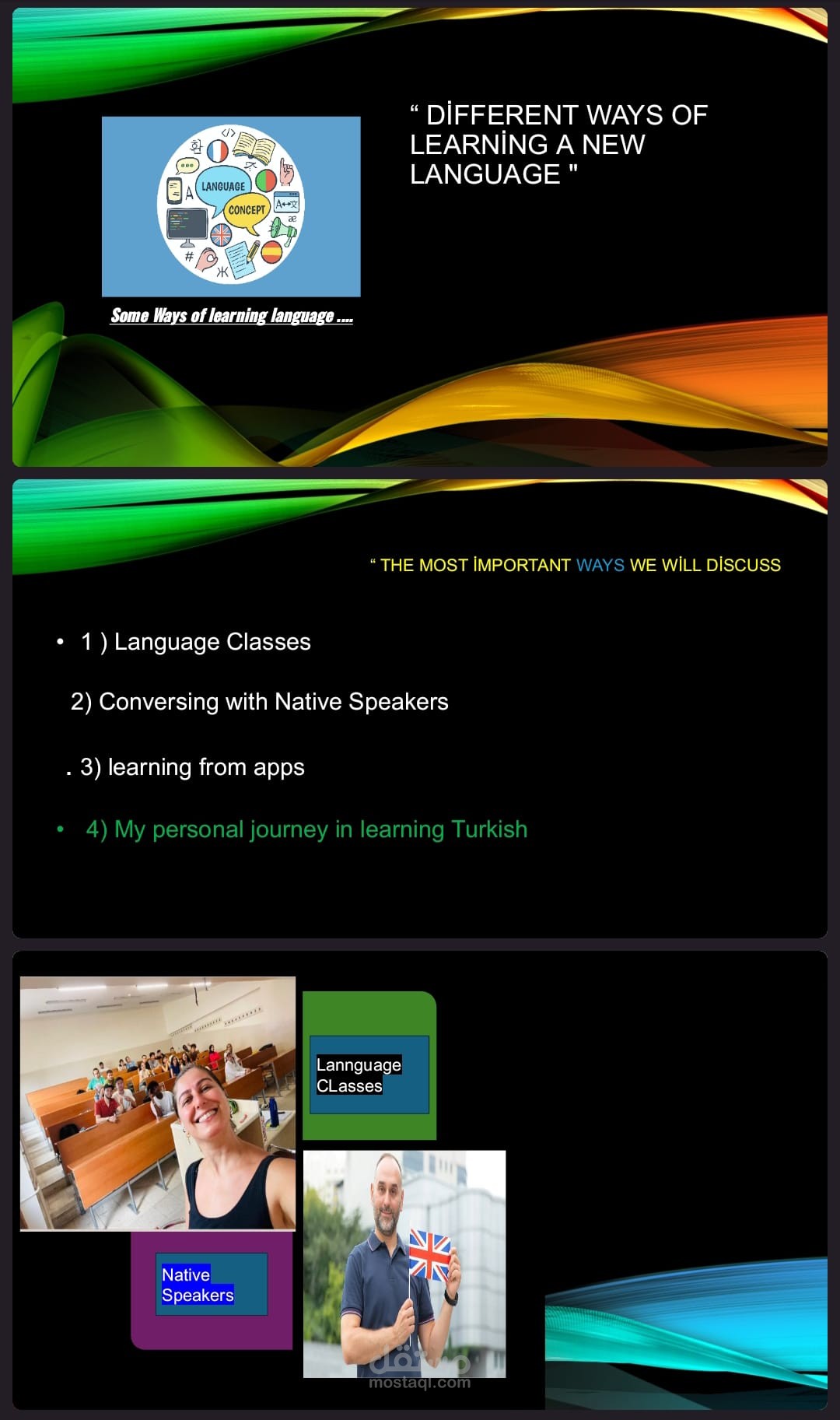 هذا عرض بوربوينت تفاعلي يستعرض طرقًا مبتكرة وفعالة لتعلم لغة جديدة. يتضمن أفكارًا متنوعة مثل التعلم من خلال الألعاب، مشاهدة المحتوى الترفيهي، ممارسة المحادثة اليومية، واستخدام التطبيقات الذكية. يهدف العرض إلى تقديم استراتيجيات ممتعة تسهّل اكتساب اللغة بطريقة طبيعية وسلسة.