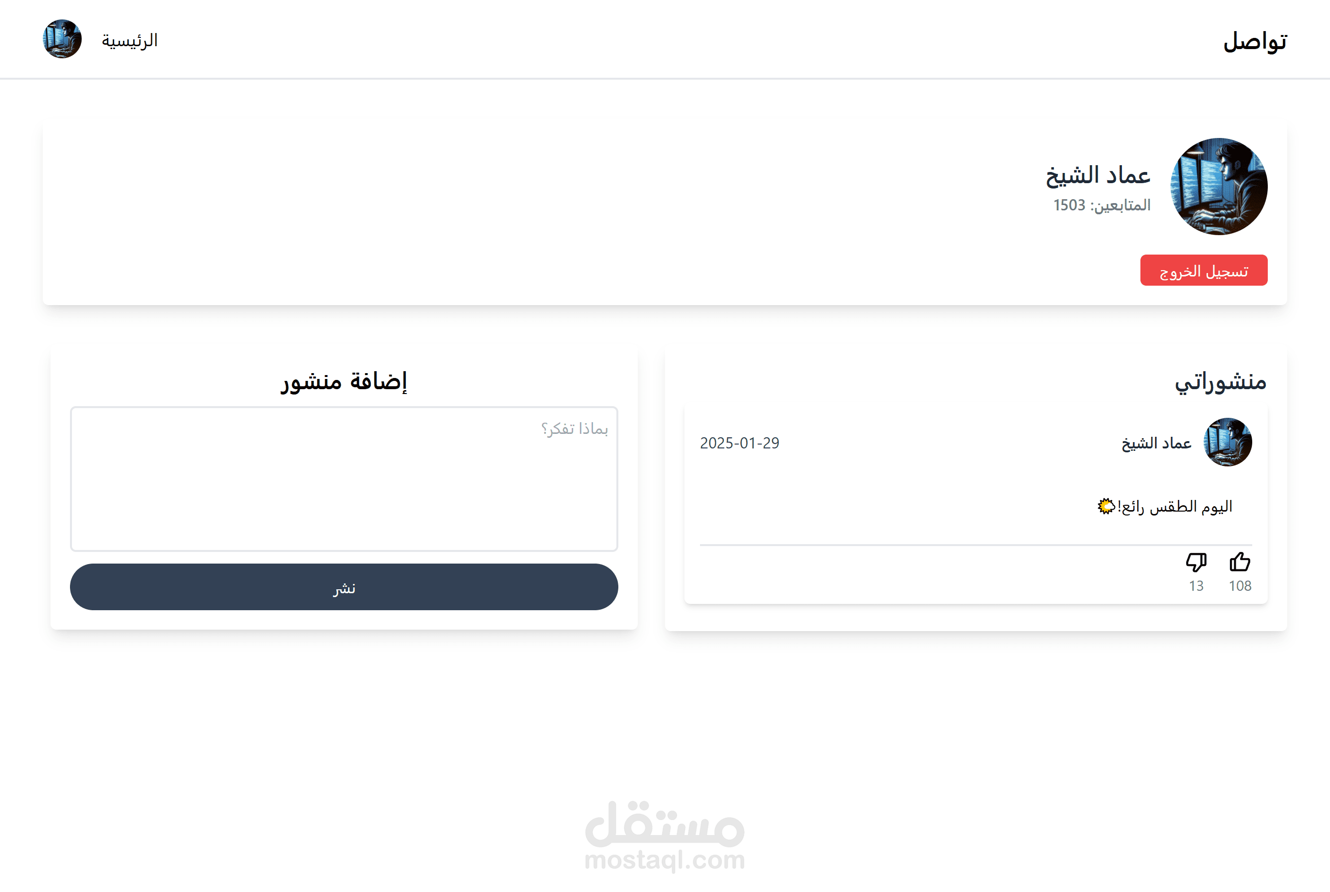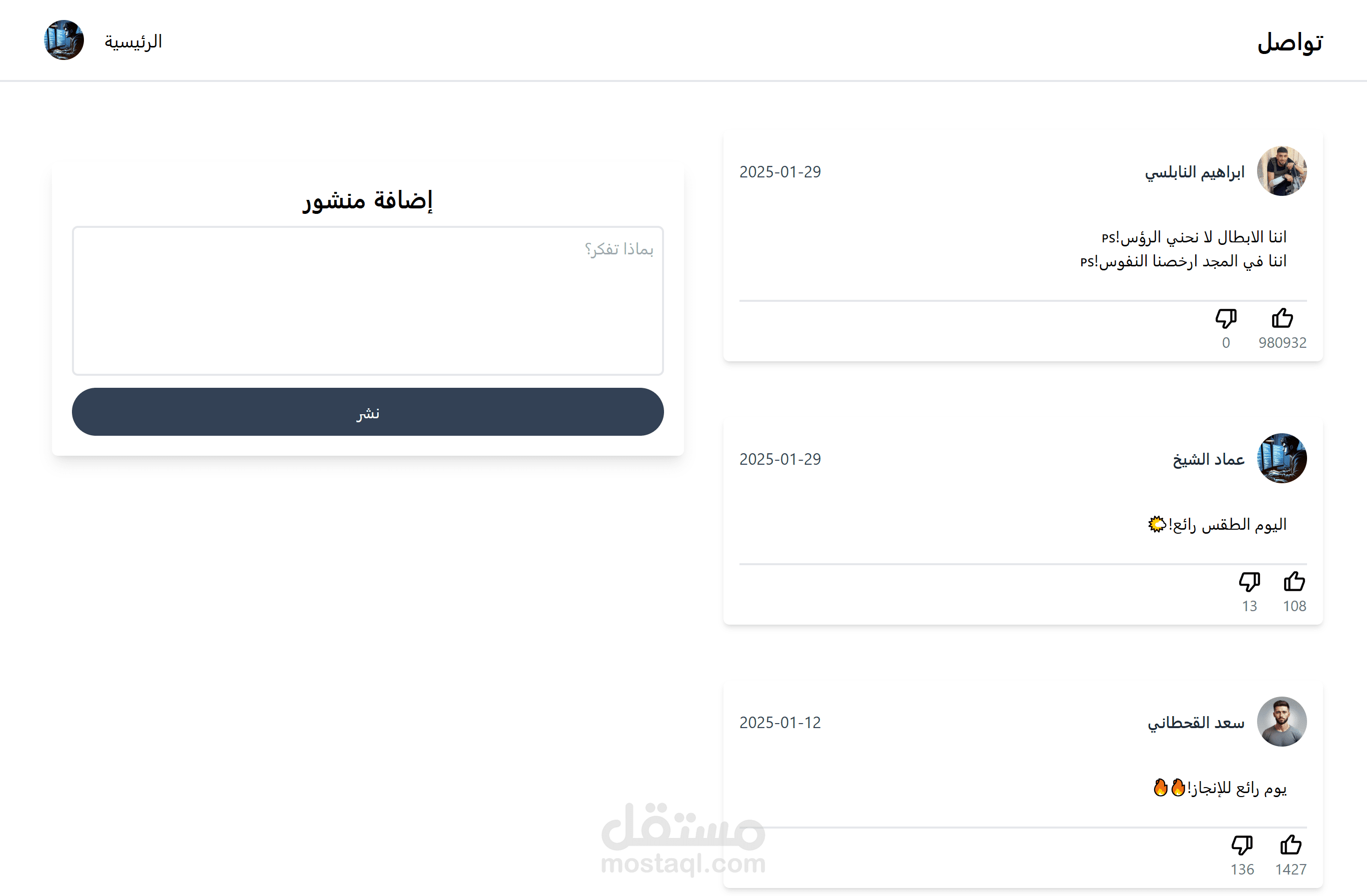 - نظام إعجاب وعدم إعجاب بالمنشورات