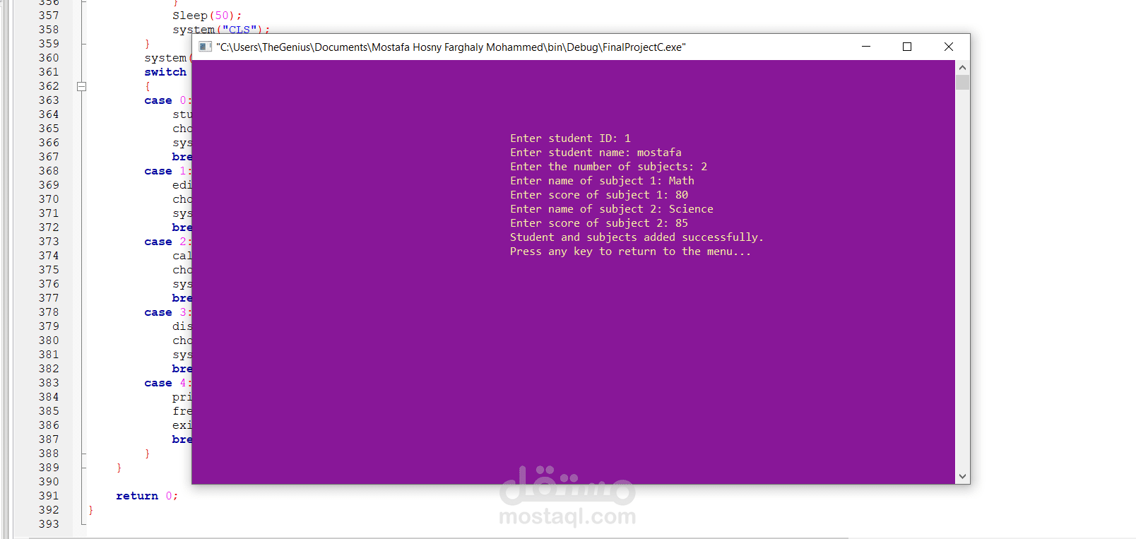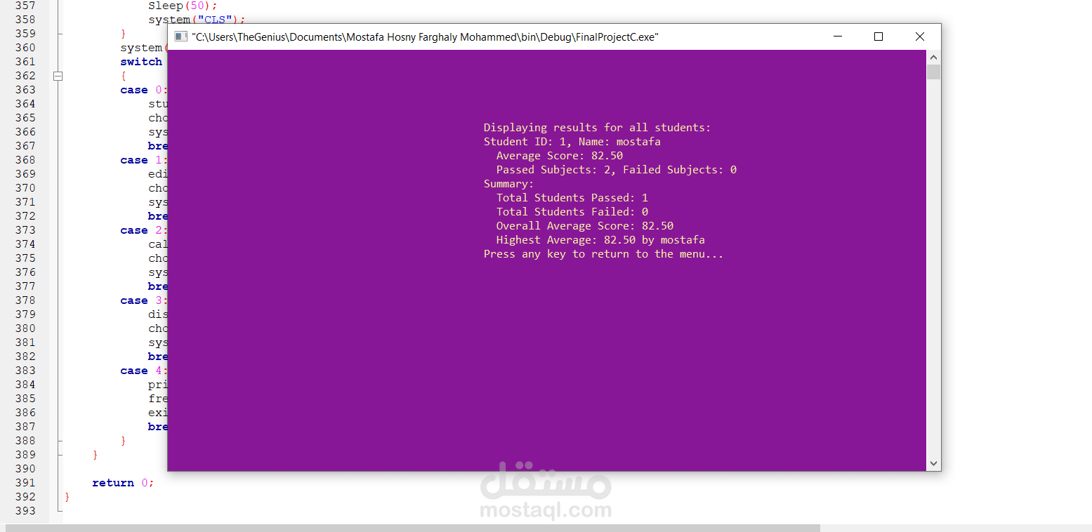 A Grade System in C is a simple console-based program that allows users (teachers or students) to input student records, calculate grades based on scores, and display the results. The program typically follows a structured approach using arrays, functions, and file handling for data persistence.