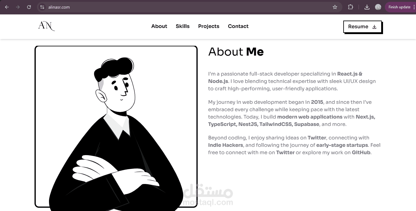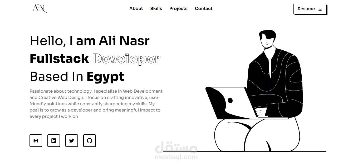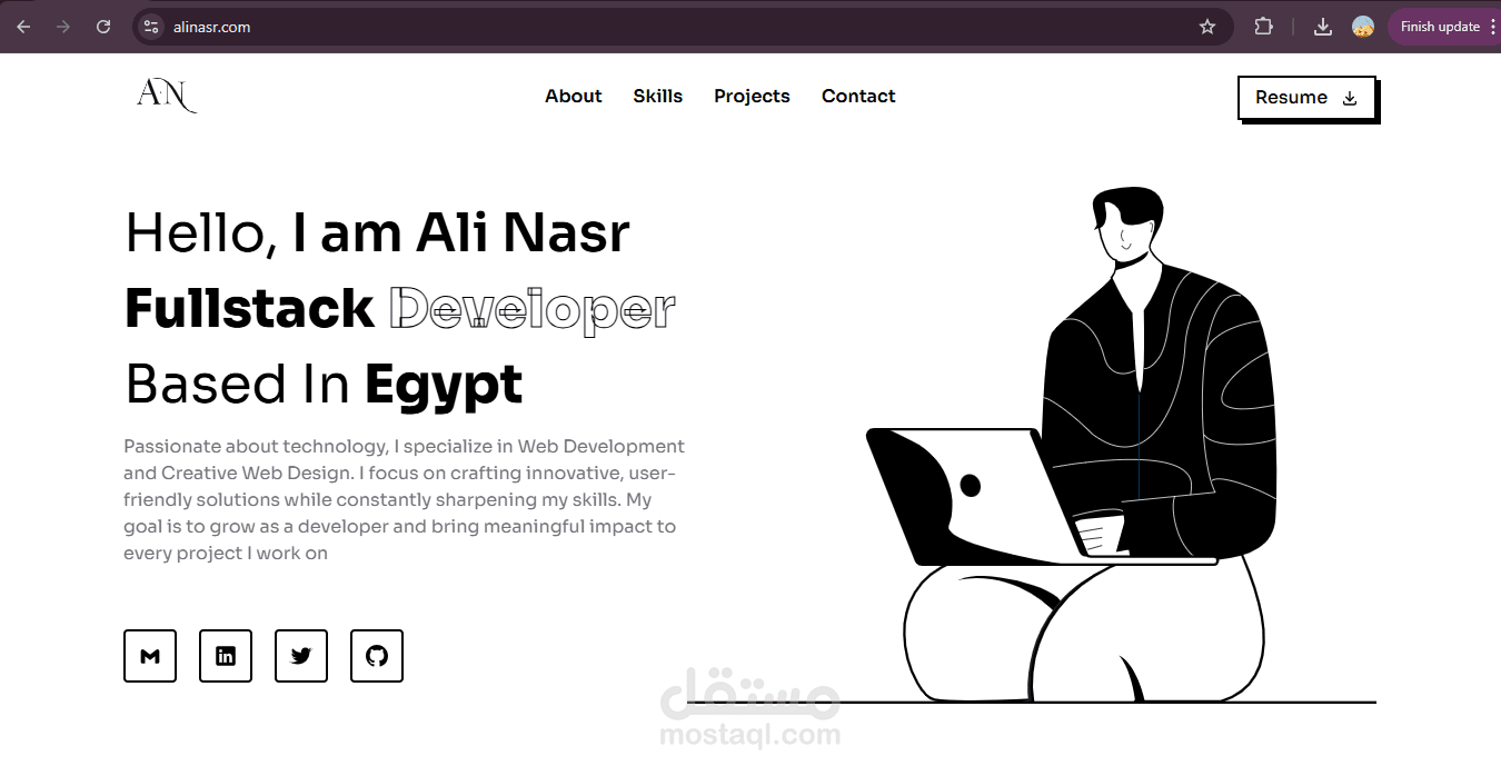 قمت بتصميم وتطوير بورتفوليو شخصي متكامل للمصمم والمطور علي نصر، يهدف إلى إبراز أعماله ومهاراته التقنية بطريقة عصرية ومبهرة تعكس شخصيته الاحترافية وشغفه بعالم التطوير.