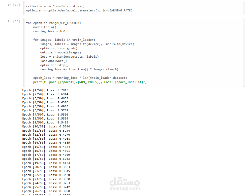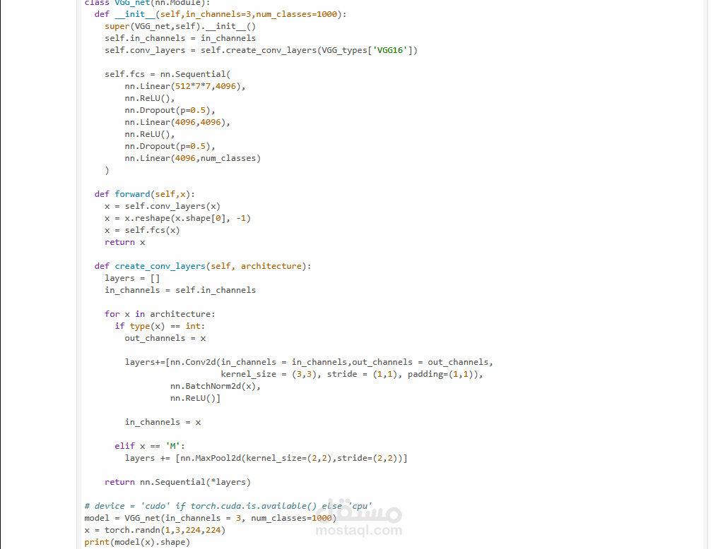 أما في المشروع الثاني، فقد استخدمتَ نموذج VGG، وهو نموذج آخر من الشبكات العصبية الالتفافية يتميز بتصميم بسيط يعتمد على طبقات متتالية من الالتفاف (Convolution) والتجميع (Pooling). على الرغم من أن VGG أقل كفاءة من ResNet من حيث عدد المعاملات، إلا أنه يُستخدم على نطاق واسع نظرًا لأدائه الجيد في تصنيف الصور.