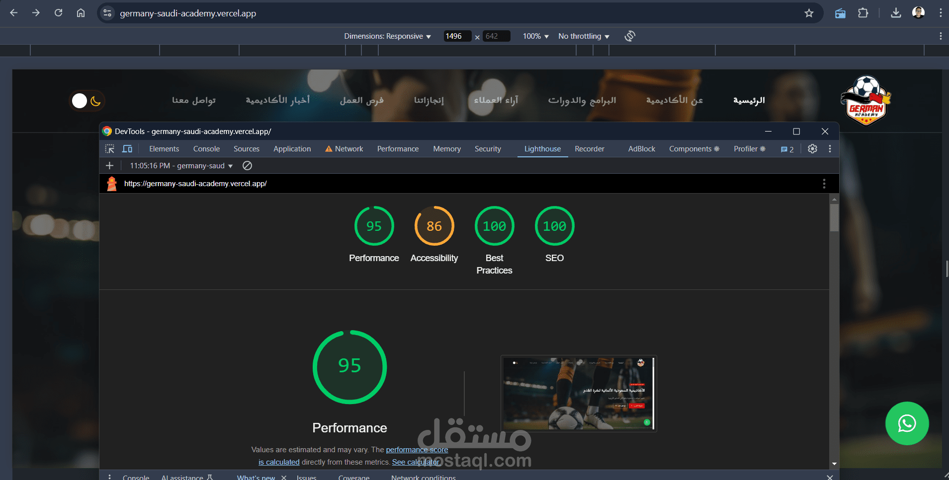 تصميم وبناء موقع الأكاديمية السعودية الألمانية لكرة القدم