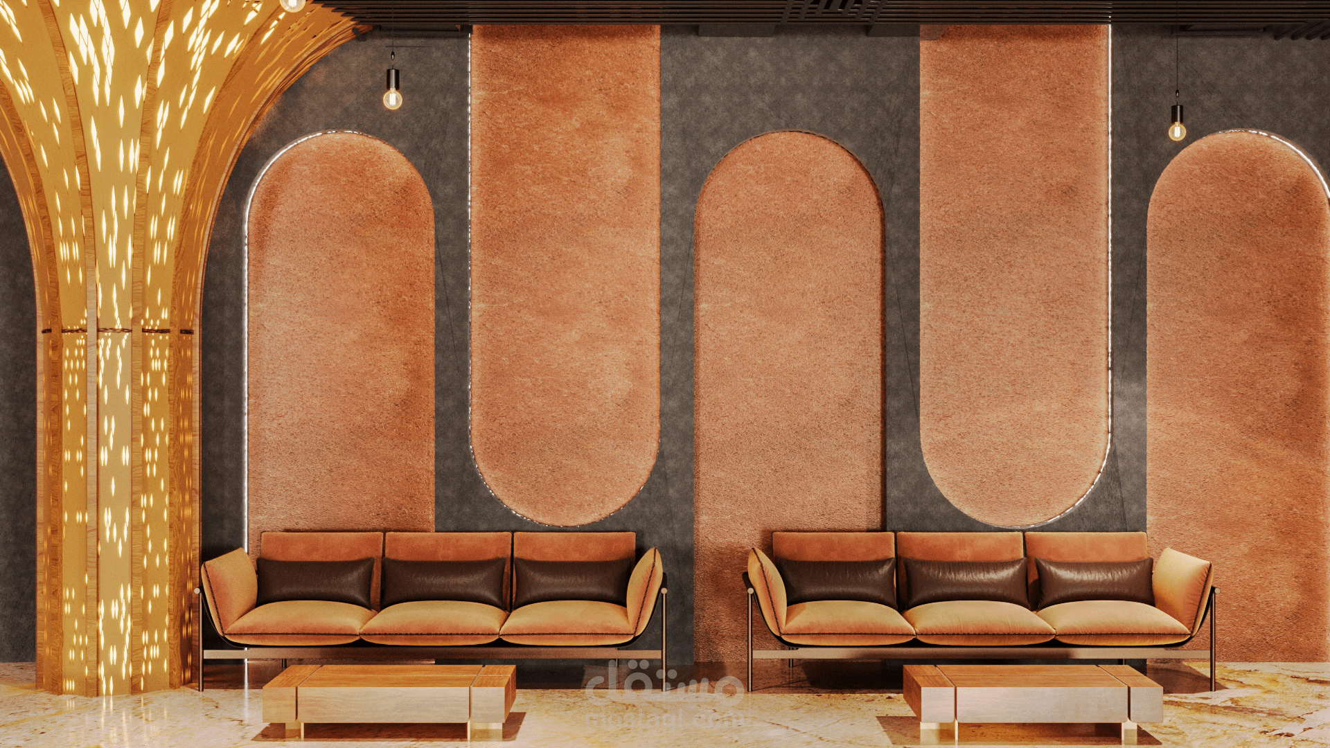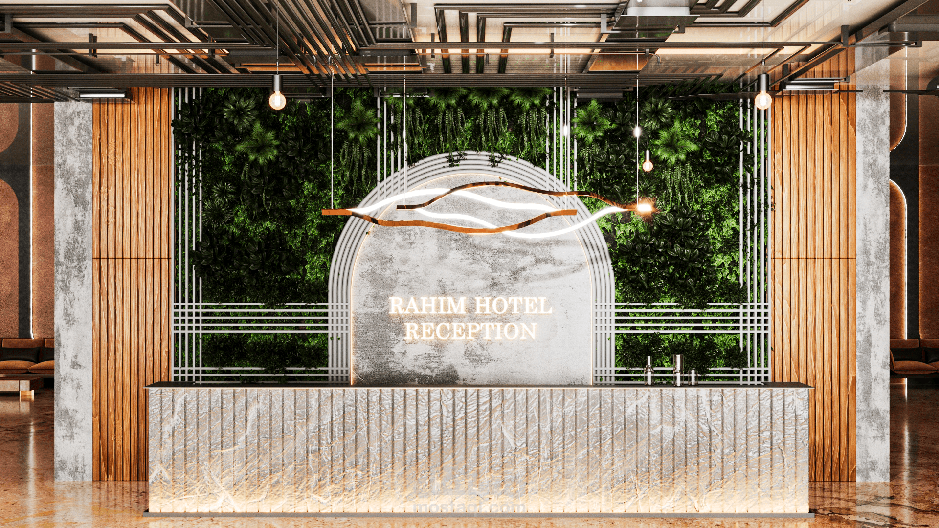 Simple design for hotel reception The design is modern and dominated by industrial style.