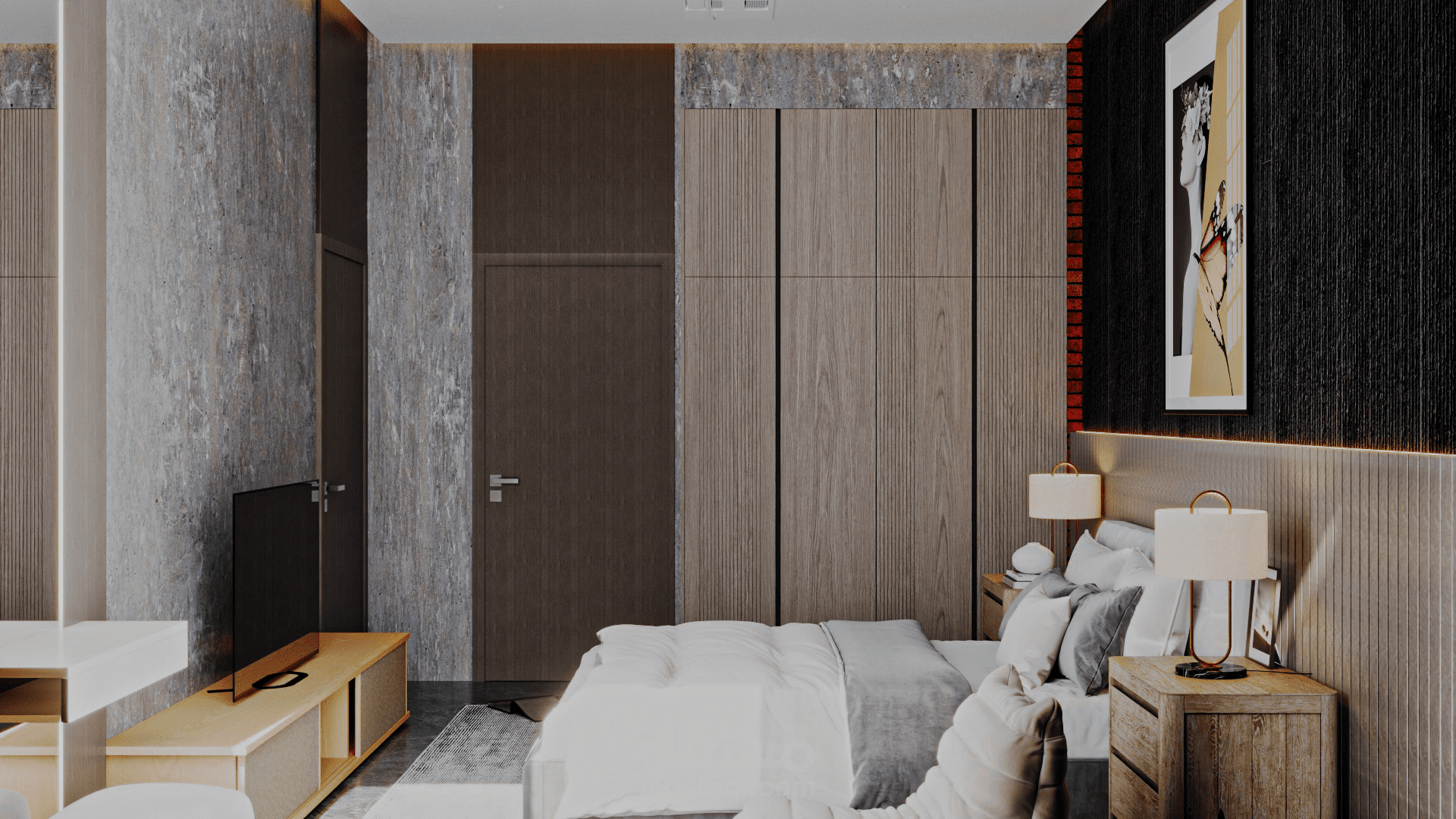 Design of a Master BedRoom in a modern design dominated by industrial style