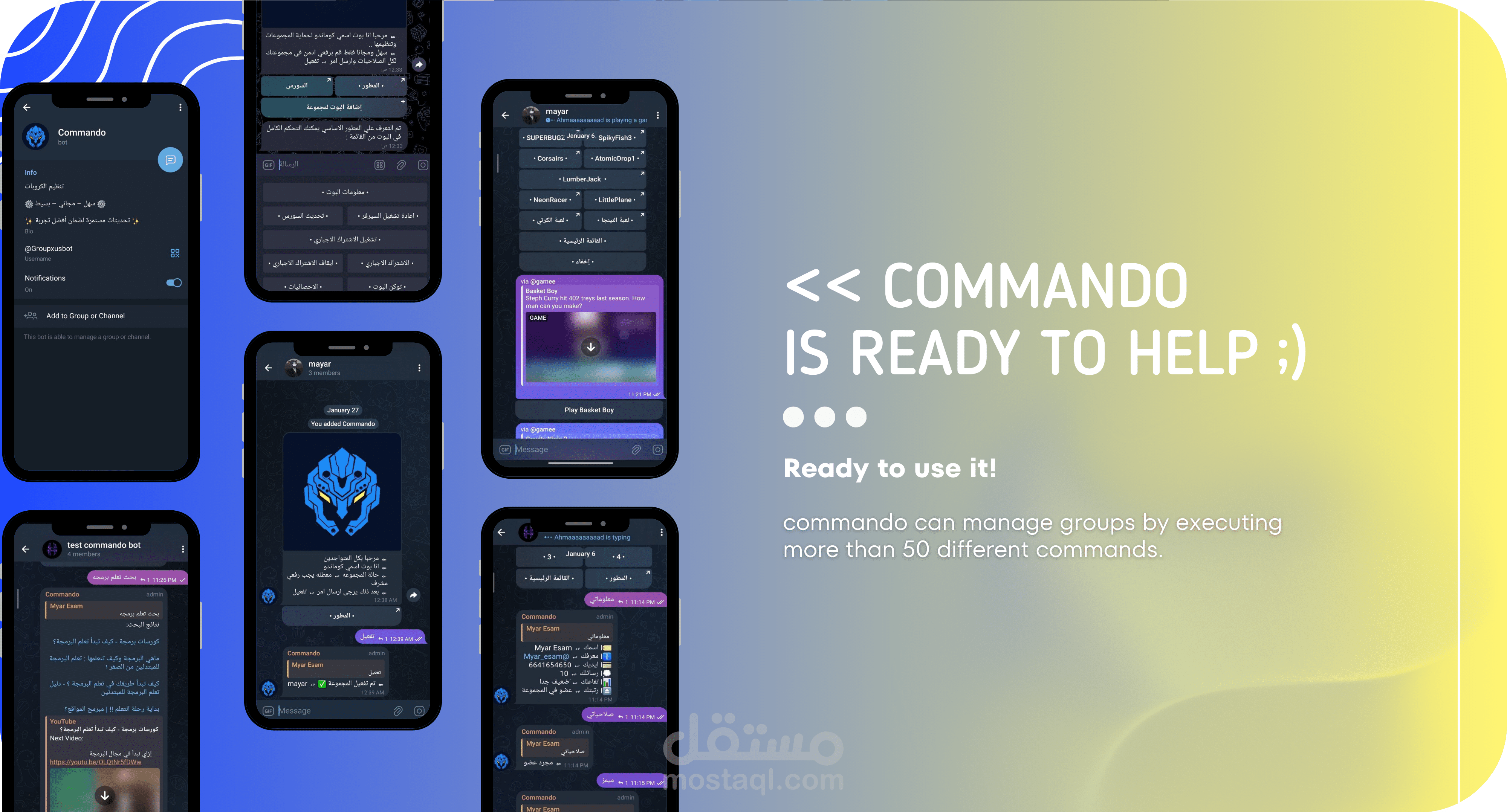 عدد الأوامر: أكثر من 5️⃣0️⃣ أمر مختلف ️√√