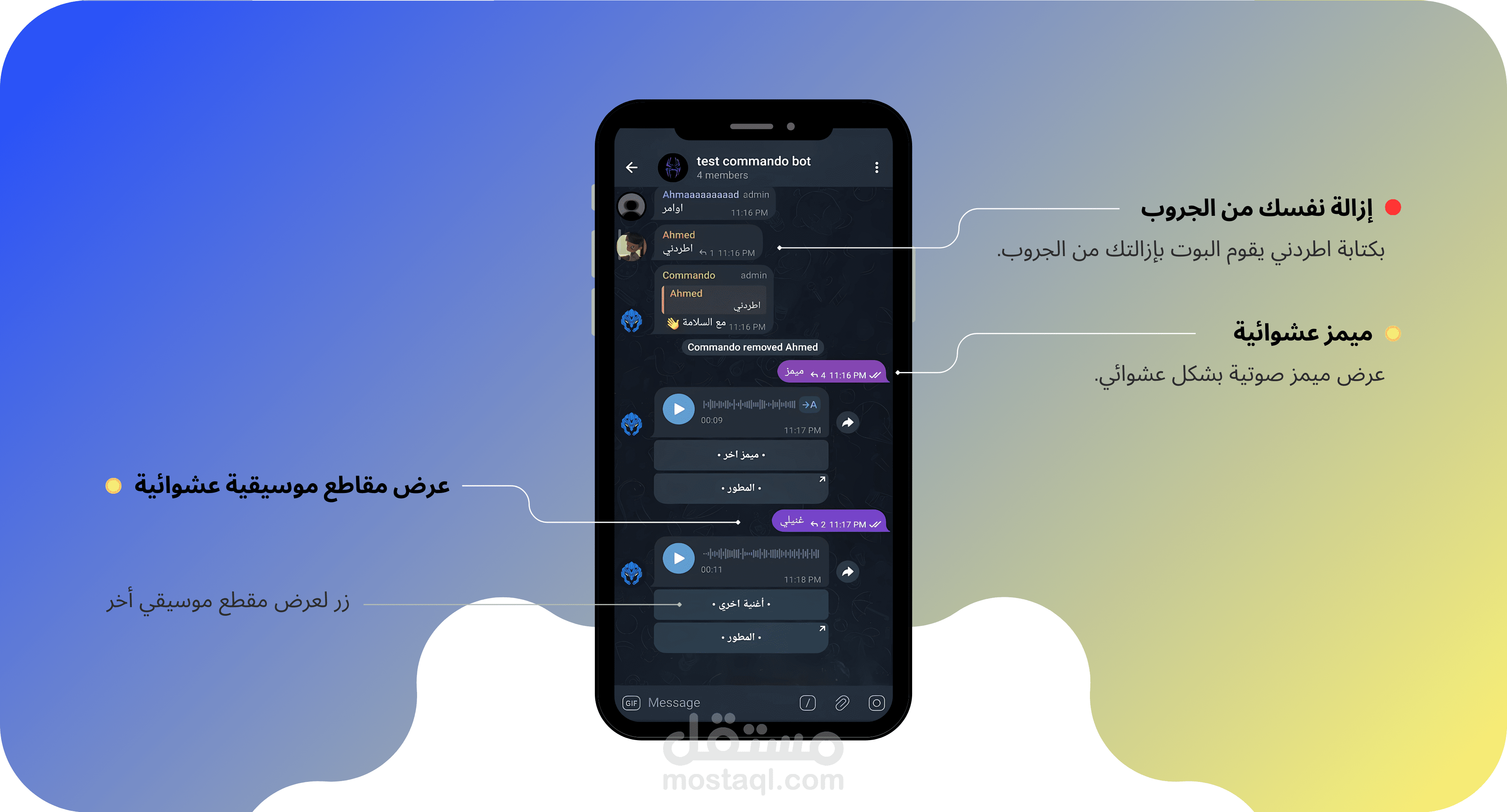 44. اطردني: طلب شخصي من البوت ليقوم بإزالتك من الجروب.