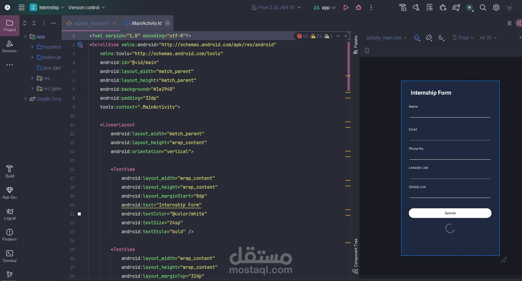 The Internship Application Form App is a simple Flutter-based mobile application designed to collect applicant details for internship opportunities. The app features a sleek dark-themed UI with a structured form layout.