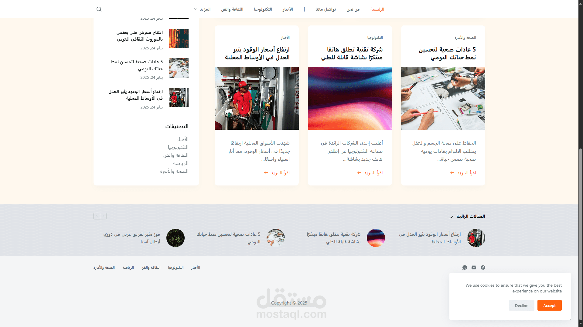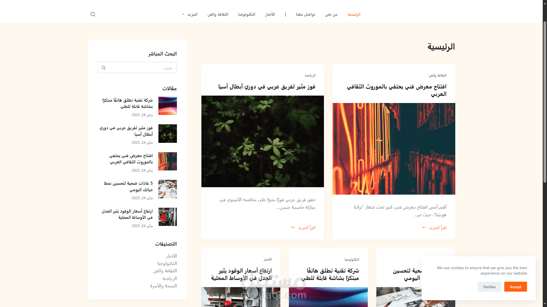 موقع ووردبريس للمدونات أو الأخبار باللغة العربية باستخدام قالب بلوكسي المجاني.