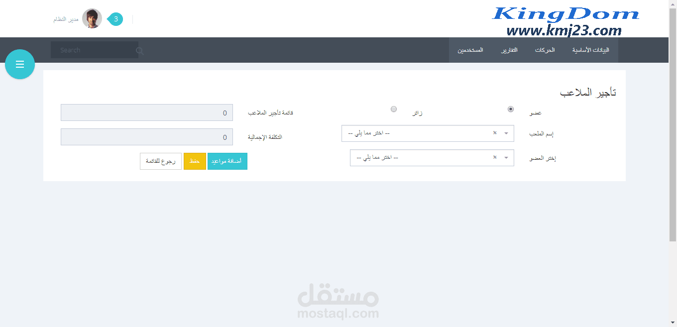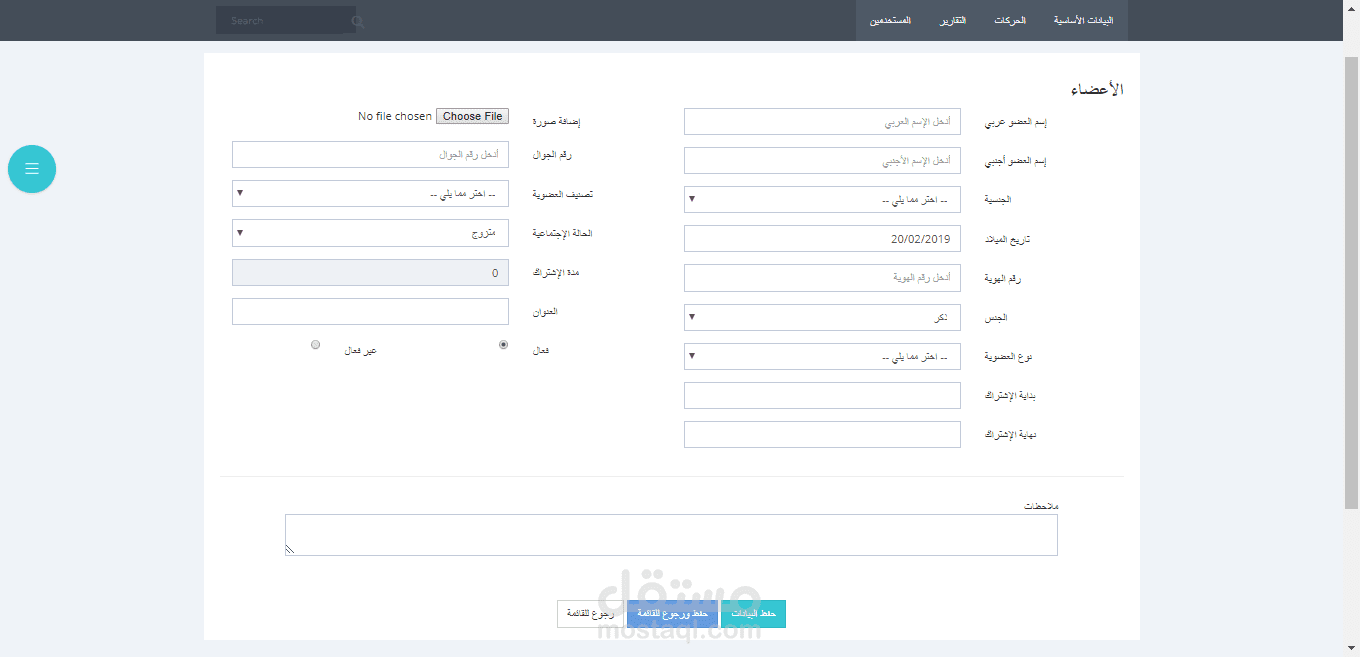 تطبيق ويب لأدارة النوادى المتوسطة والكبيرة يشمل الأشتراكات الأعضاء الأعضاء التابعين