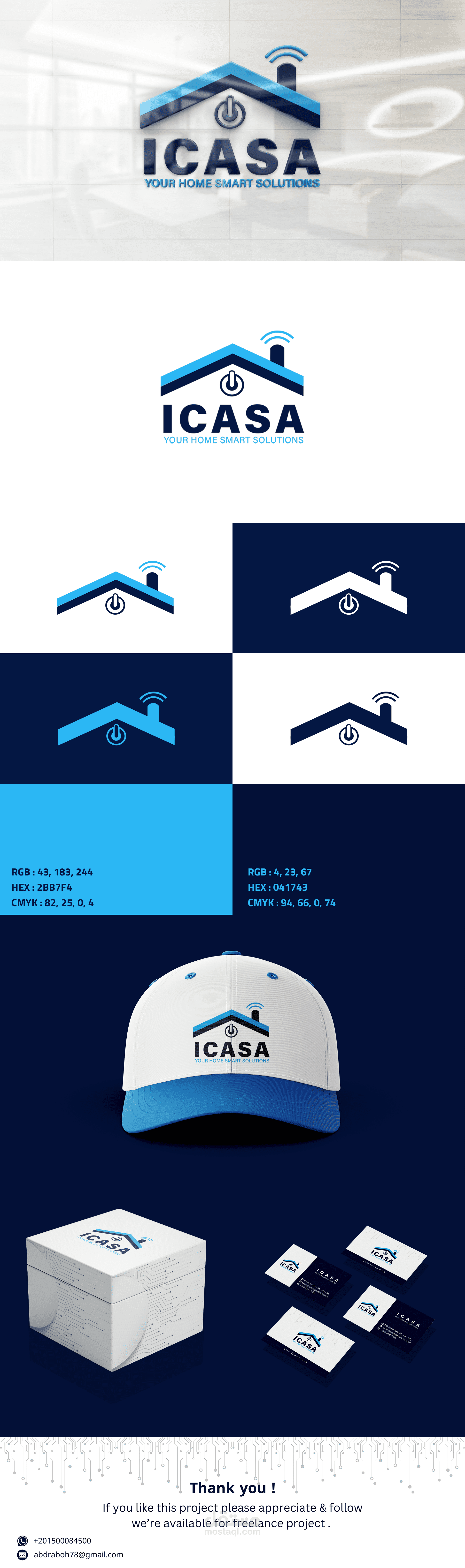 الشعار يعكس هوية تقنية وعصرية لمتجر iCasa، إليك أبرز عناصره: