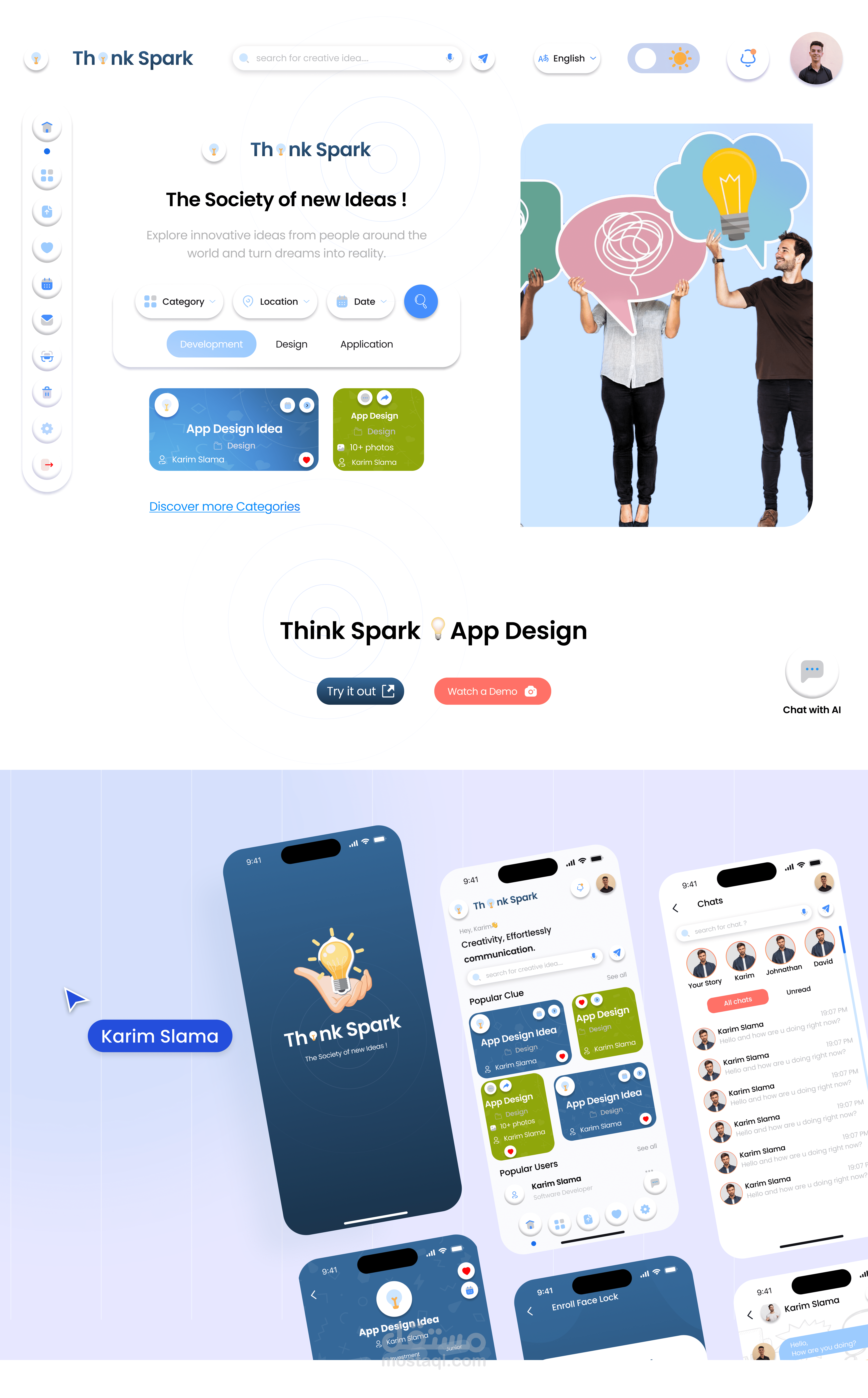 هذا التطبيق هو منصتك المثالية لمشاركة الأفكار المبتكرة والتواصل مع المستثمرين الذين هم على استعداد لتحويل هذه الأفكار إلى واقع. سواء كنت حالمًا تمتلك فكرة رائدة أو مستثمرًا تبحث عن الفرصة الكبيرة القادمة، "Think Spark" هو المكان الذي يلتقي فيه الإبداع بالفرص.