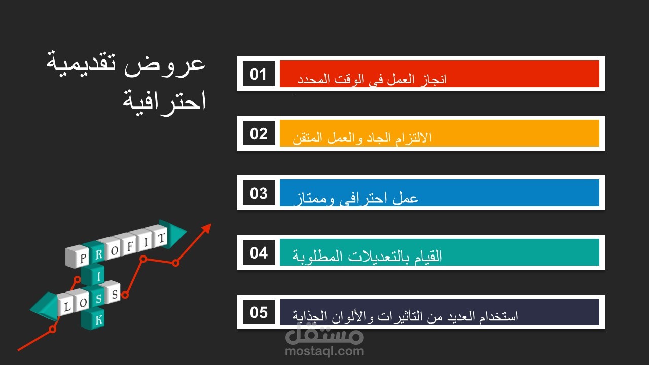 -تصميم العرض سواء باللغة العربية أو الانجليزية.