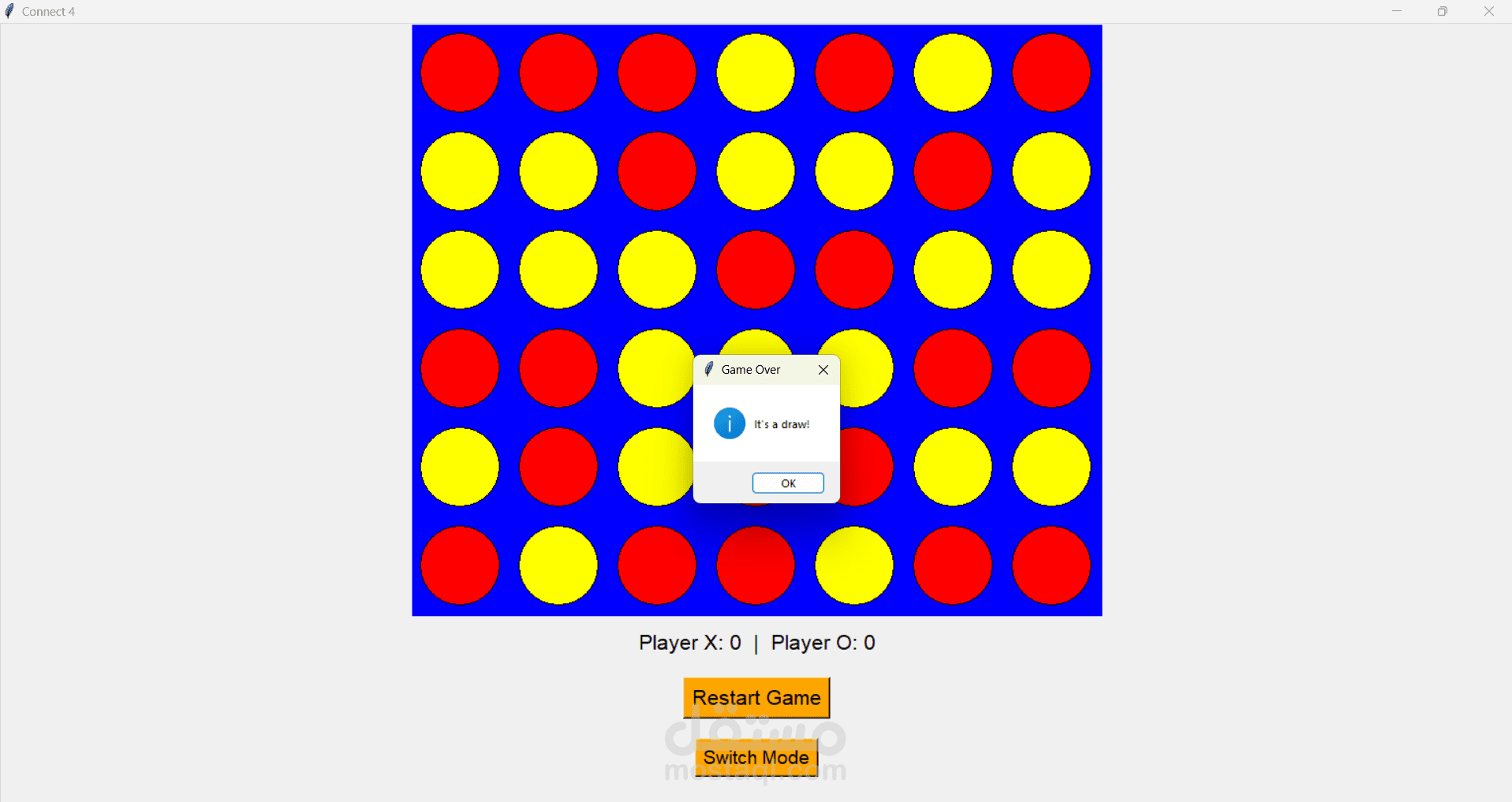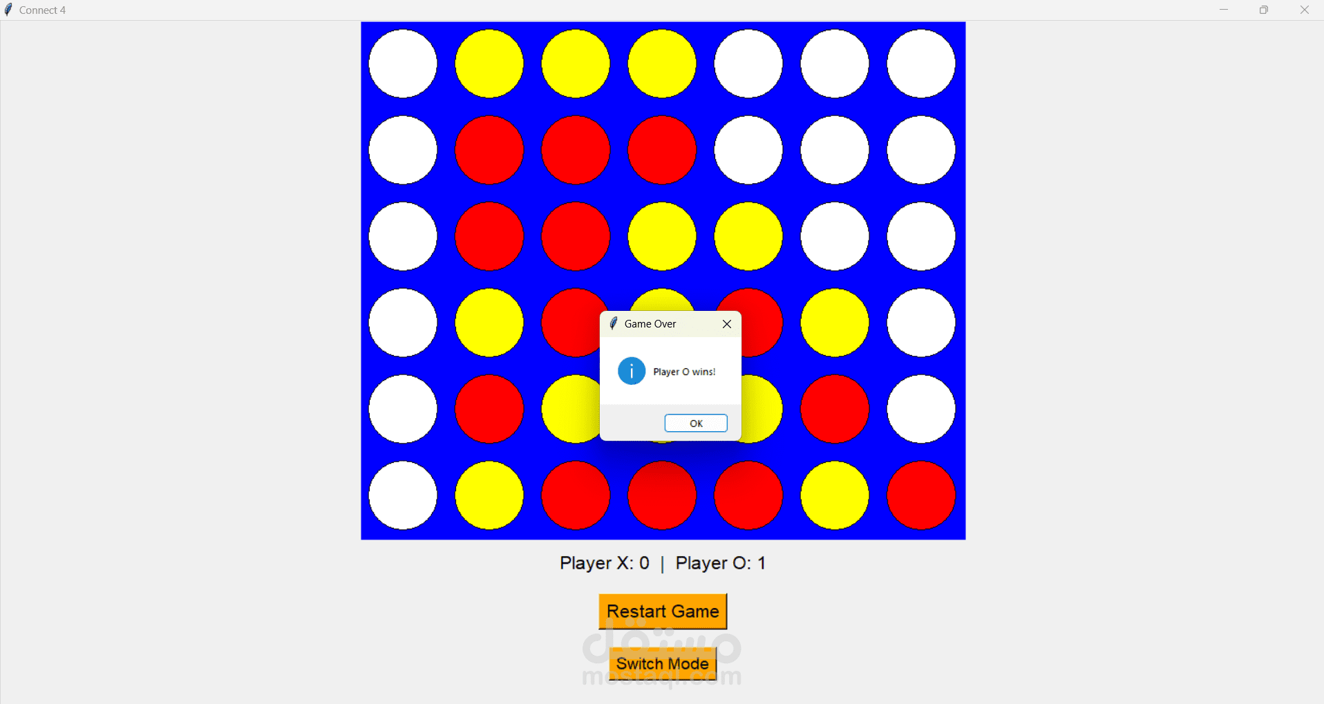 يقوم مشروع Python هذا بتنفيذ لعبة Connect 4 الكلاسيكية مع واجهة مستخدم رسومية (GUI) باستخدام مكتبة Tkinter. وهو يدعم أوضاع Player vs Player (PVP) و Player vs AI (PVAI) ، مع خصم AI مدعوم من خوارزمية Minimax.