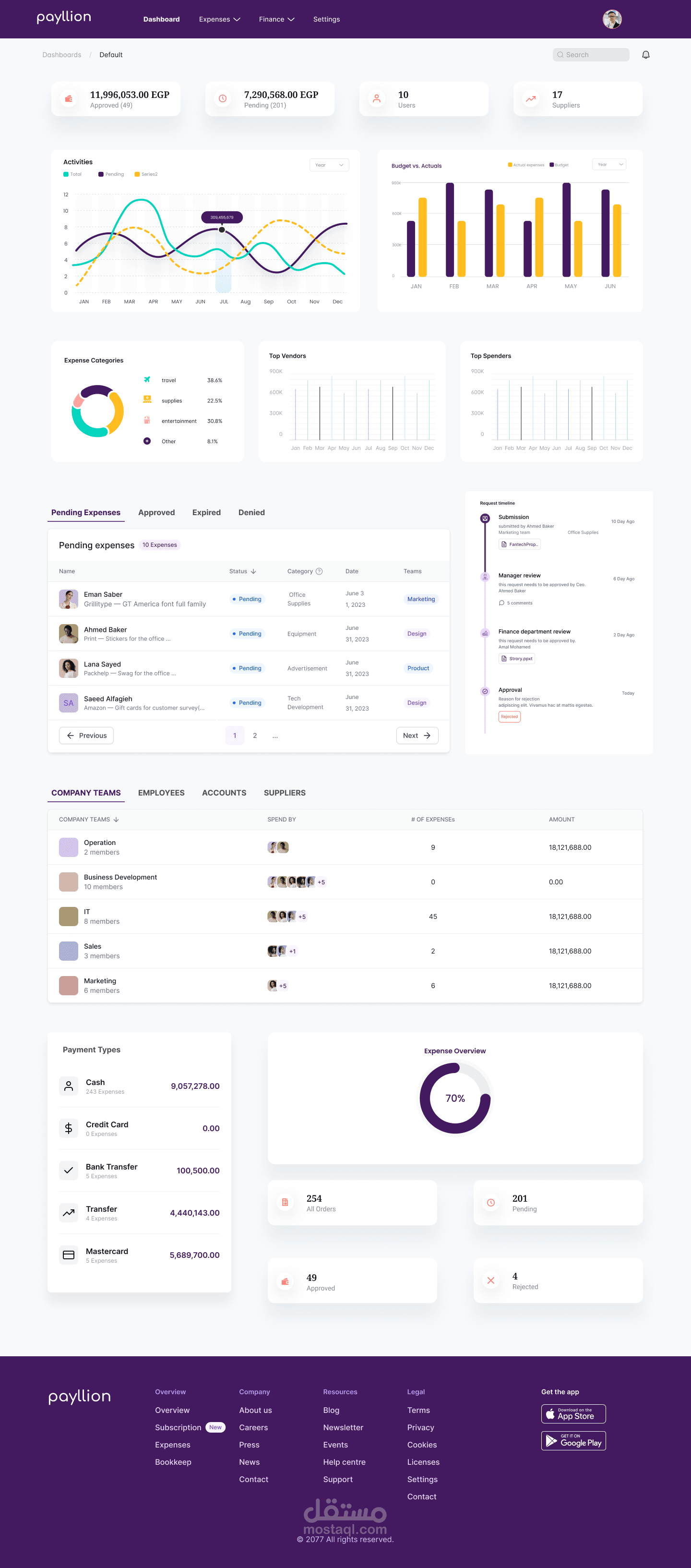 لقد قمت بتطوير نظام إدارة النفقات لشركة تسمى Payllion، وهو مصمم لتبسيط وتنظيم العمليات المالية. يتضمن النظام نظام إخطار قوي عبر البريد الإلكتروني وتنبيهات المتصفح، مما يضمن بقاء المستخدمين على اطلاع دائم في الوقت الفعلي. يتميز بنظام إدارة مستخدمين مزدوج، مع واجهات منفصلة لمسؤولي الشركة والمستخدمين النهائيين، بالإضافة إلى آلية شاملة للتحكم في الوصول تعتمد على الدور لتعزيز الأمان. تدعم المنصة وظائف متعددة اللغات لتلبية احتياجات قاعدة مستخدمين متنوعة.