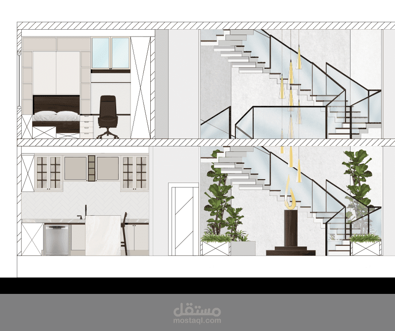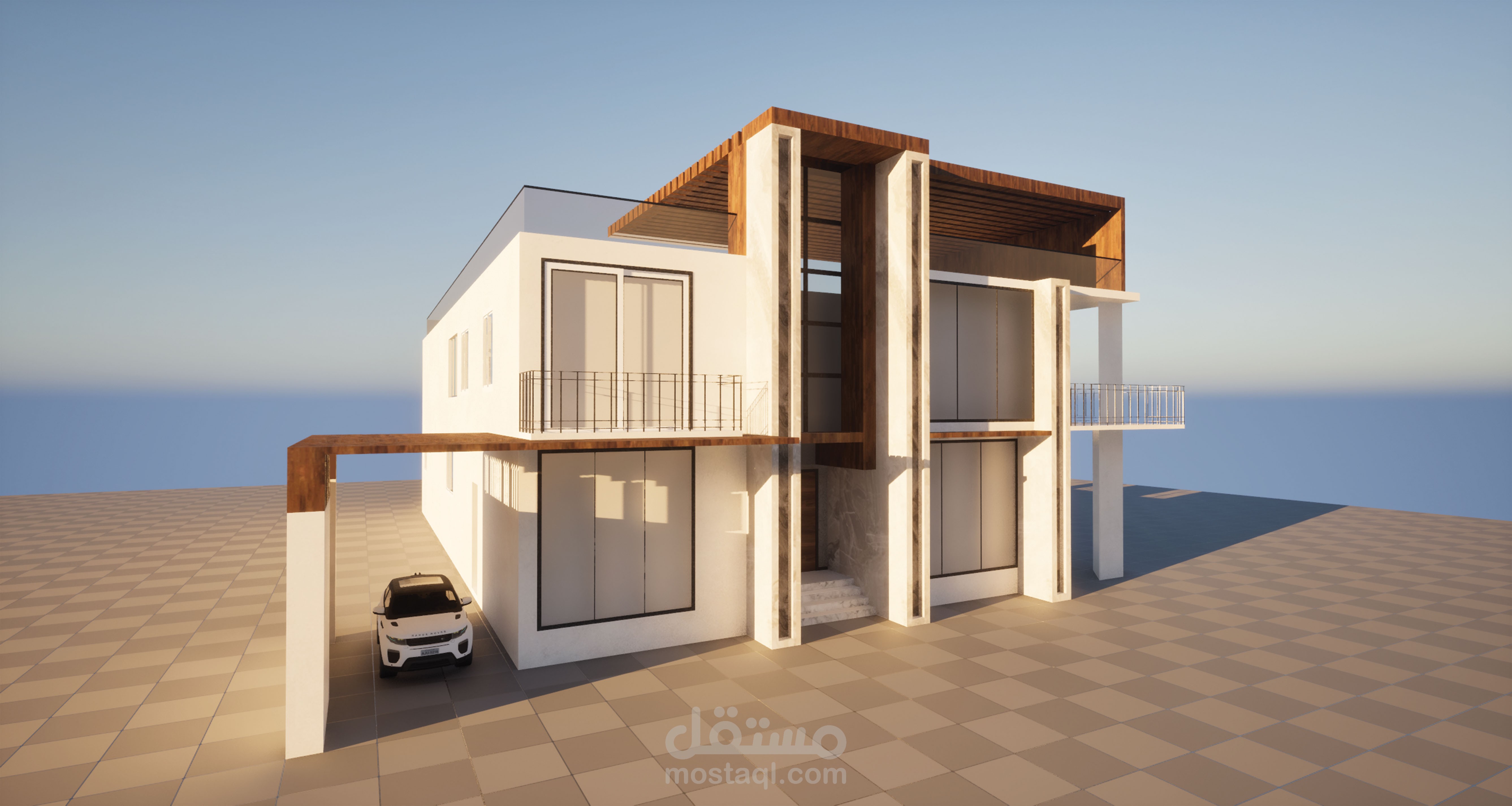 تصميم خارجي و داخلي لفيلا متواجدة في اسيوط الجديدة بمصر.