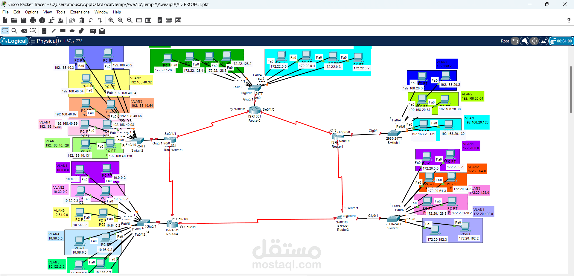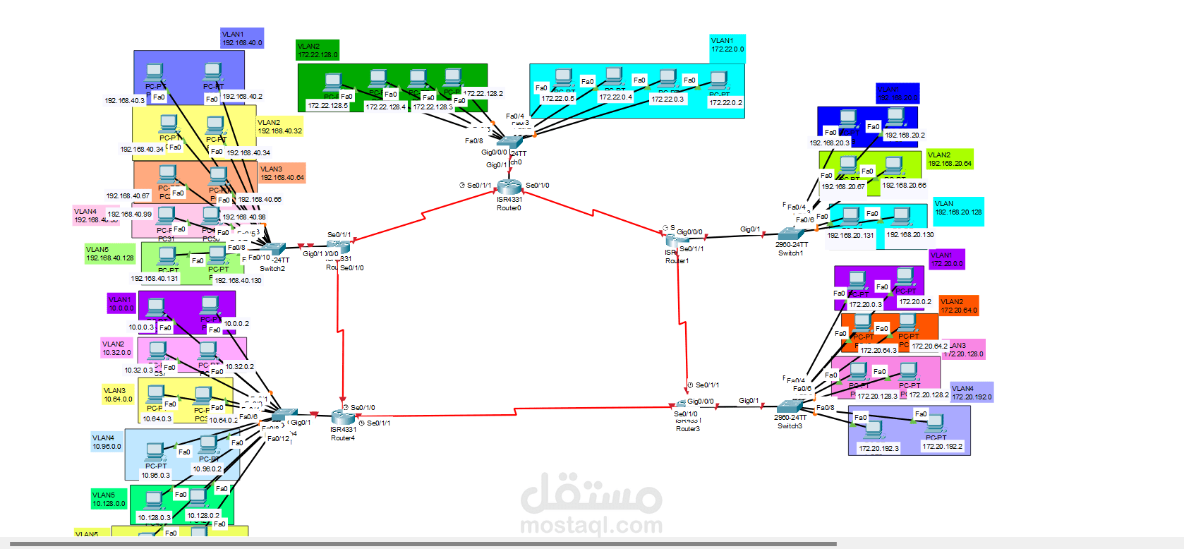 يتضمن هذا المشروع نقل البيانات عبر 5 أجهزة راوتر إلى 45 جهازًا، مع ضمان تواصل سلس عبر الشبكة. بالإضافة إلى ذلك، يتم تطوير برنامج باستخدام بايثون لإرسال البيانات تلقائيًا عن طريق إدخال اسم الشبكة وعنوان الـ IP، مما يسهل عملية نقل البيانات. يضمن النظام توجيه البيانات بشكل فعال، وتسليمها بدقة، وتقليل التأخير، مما يجعله مناسبًا للبيئات الشبكية المعقدة