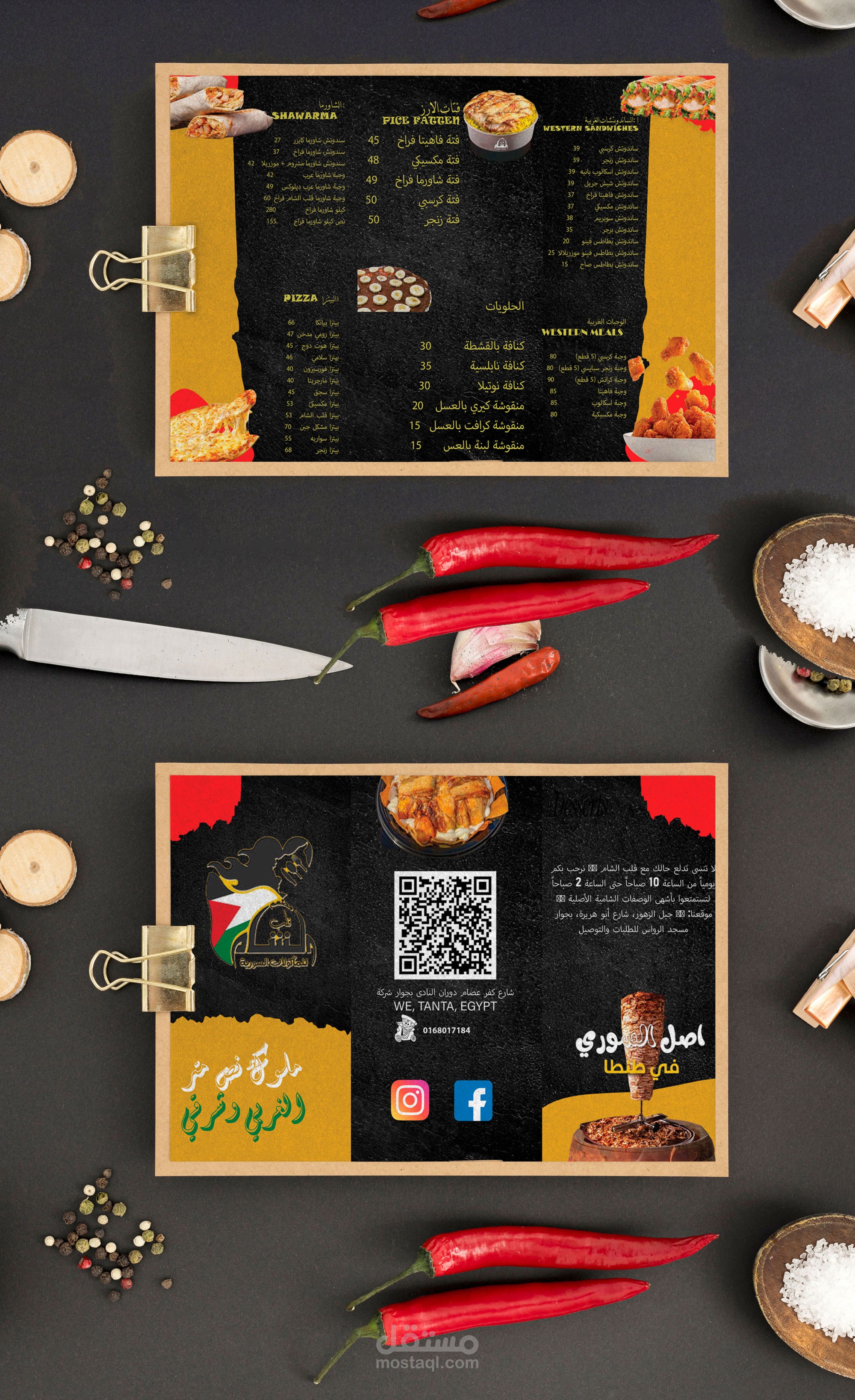 عنوان المطعم ورقم الهاتف (إن وجد).