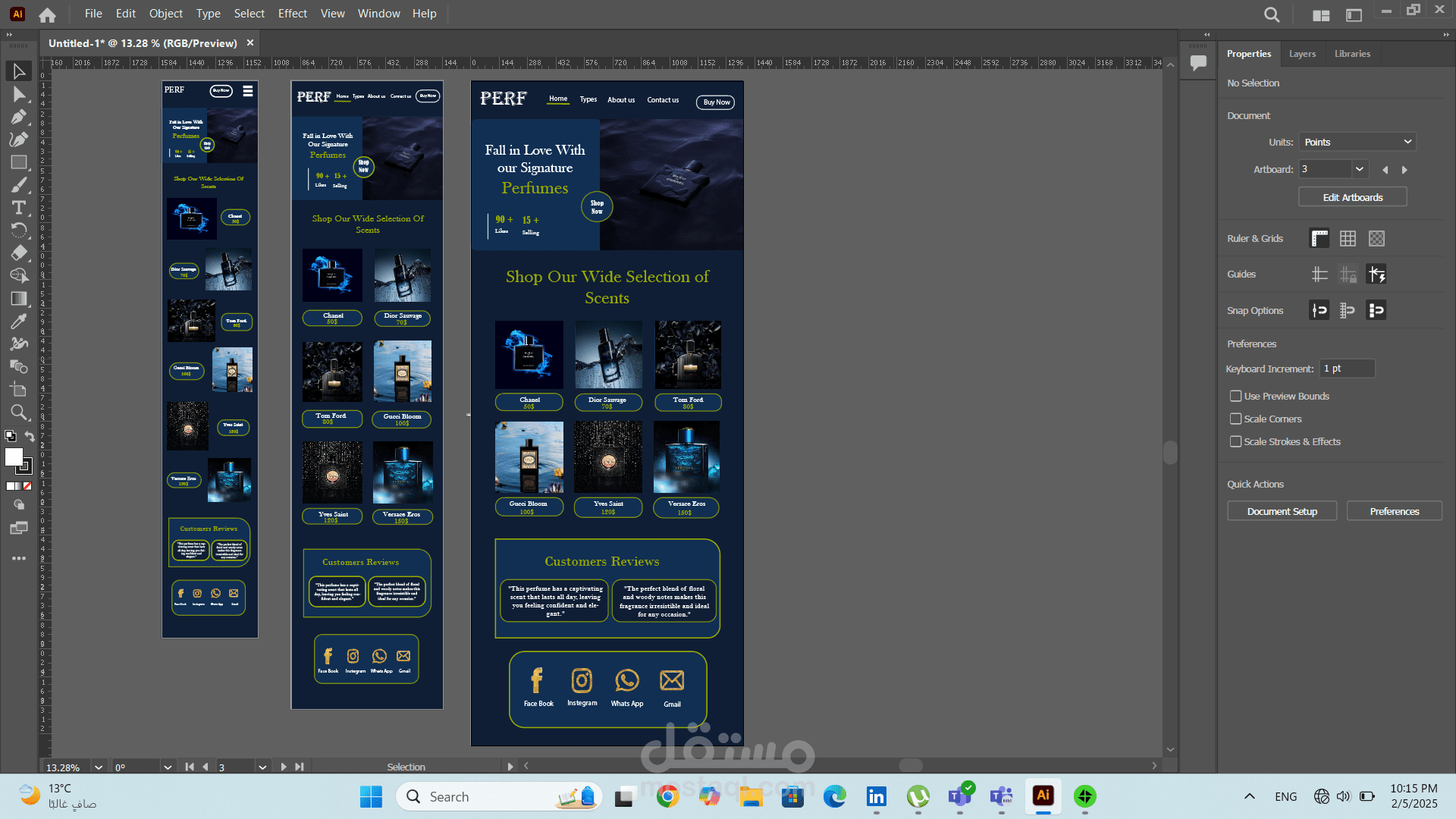 I recently completed a project where I designed a responsive UI for a perfume website using Adobe Illustrator. The design is tailored for three screen sizes: