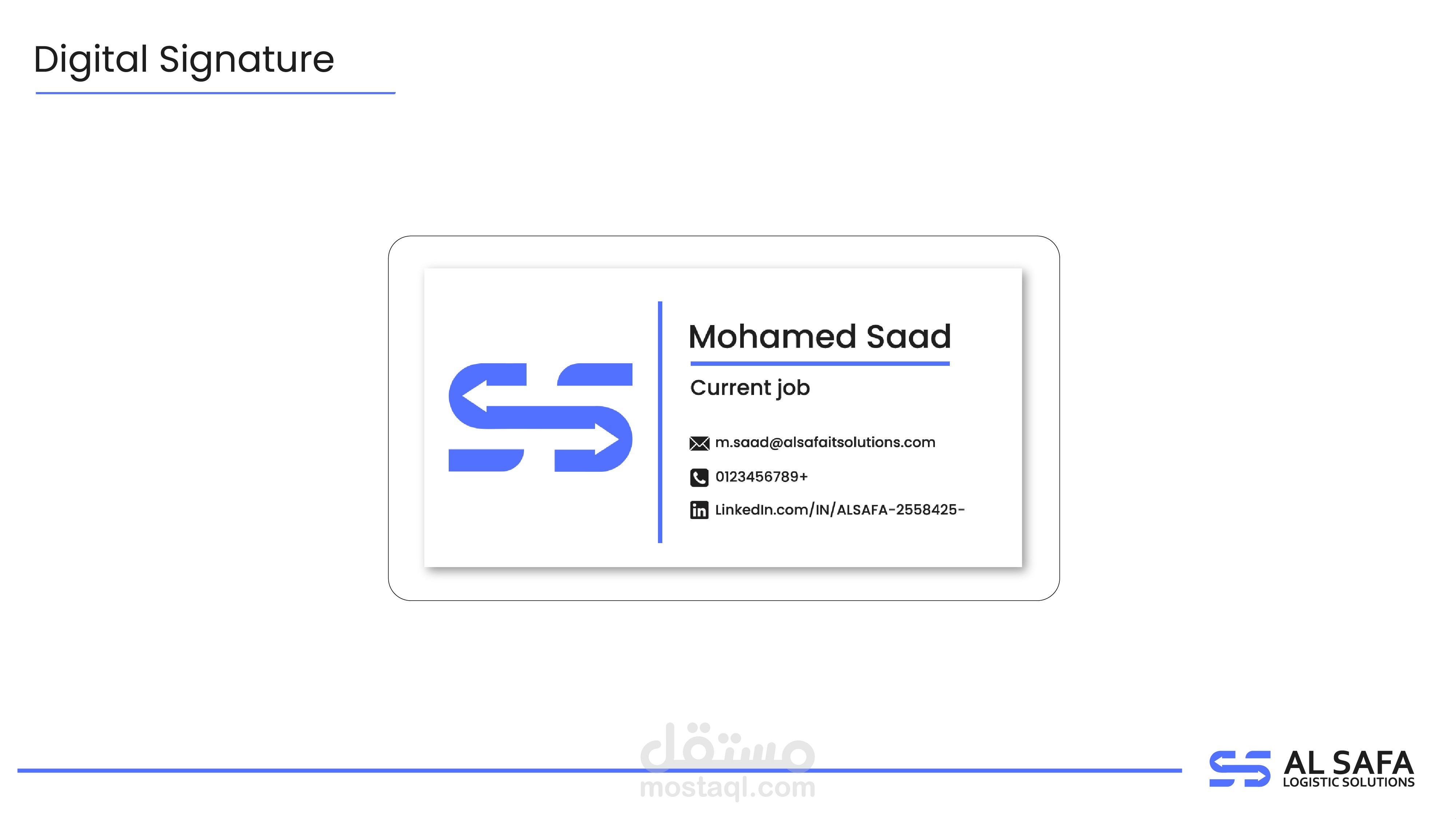 - عنوان العرض (مثلاً: "إطلاق الهوية البصرية الجديدة لـ AL SAFA Logistics Solution")