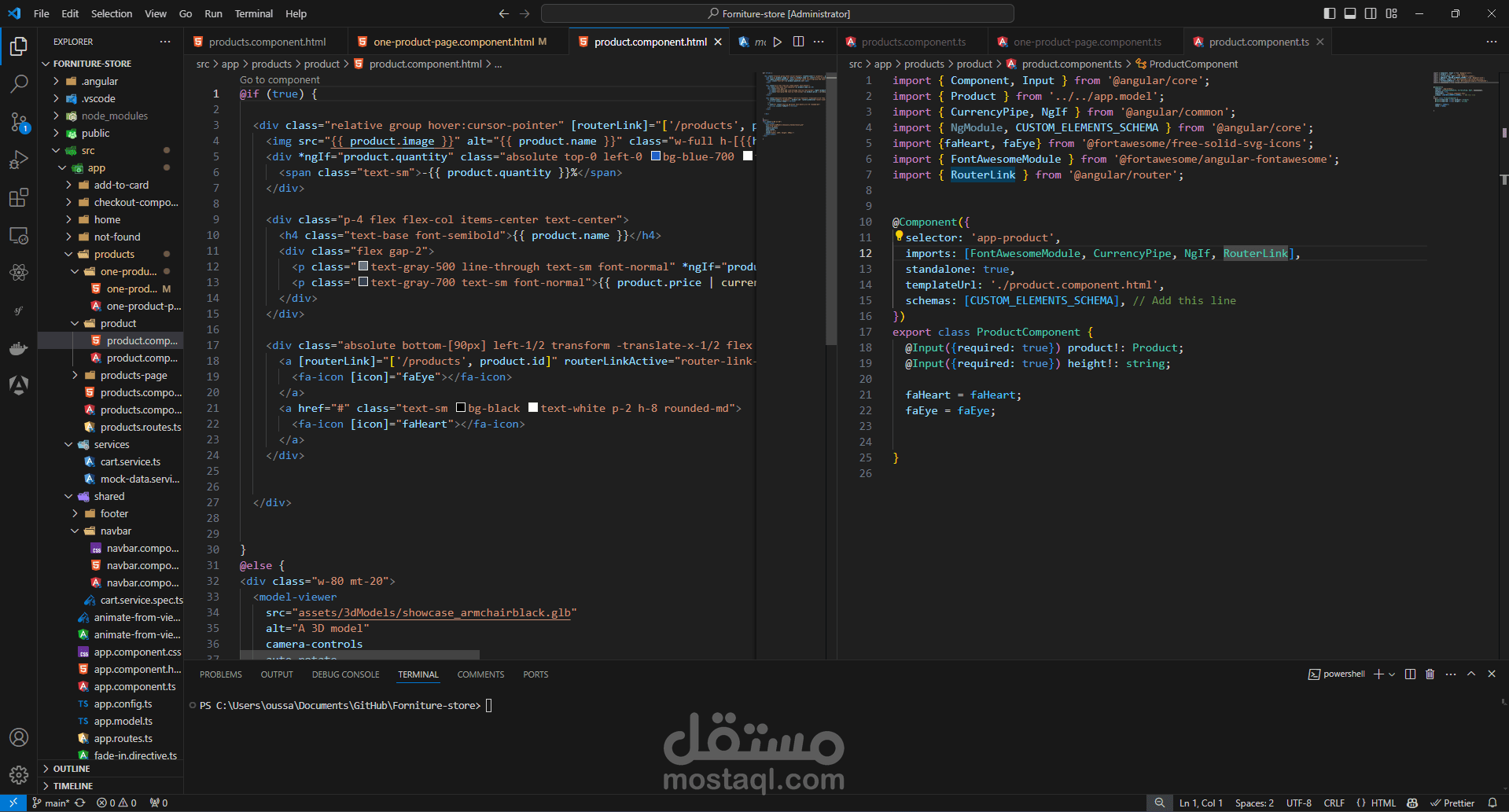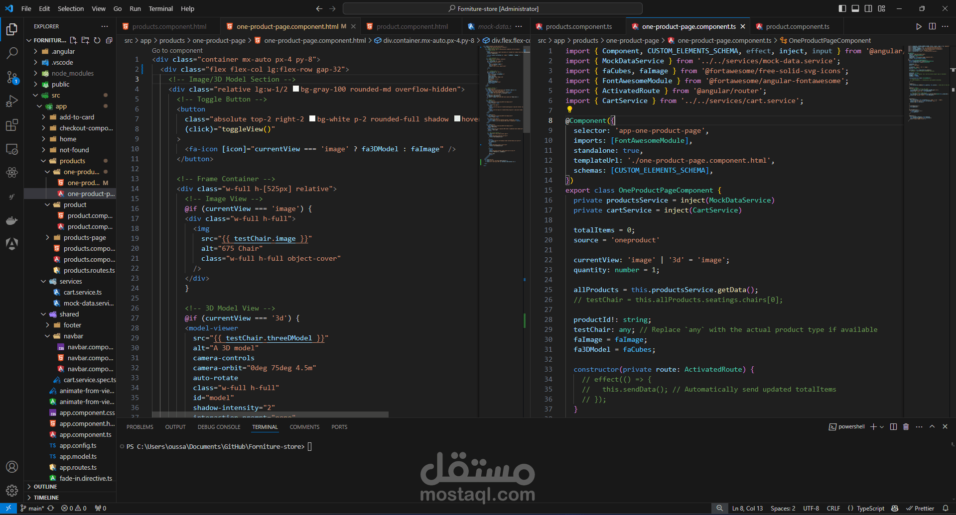 يُعد هذا المشروع متجر أثاث رقمي يقدم تجربة تسوق مبتكرة لعشاق التصميم الداخلي. تم تطوير الموقع باستخدام Angular الذي يضمن أداءً سلسًا وتفاعلاً سريعًا، فيما ساهمت مكتبة TailwindCSS في تصميم واجهة عصرية وأنيقة. الأهم من ذلك، أن المتجر يتيح للمستخدمين استعراض الأثاث ليس فقط بصور ثابتة ثنائية الأبعاد، بل وبنماذج ثلاثية الأبعاد تفاعلية عبر مكتبة model-viewer من جوجل، مما يمنحهم فرصة لاستكشاف تفاصيل المنتجات من كل زاوية قبل اتخاذ قرار الشراء. هذا المزيج من التقنيات الحديثة يضمن تجربة تسوق متكاملة ومميزة تضع المستخدم في قلب العملية.