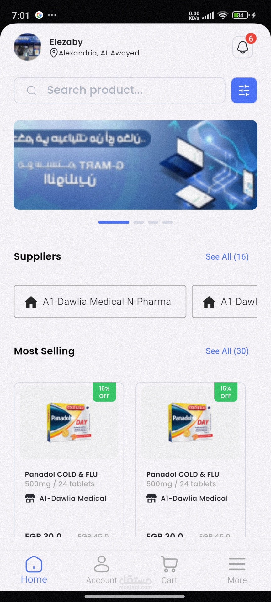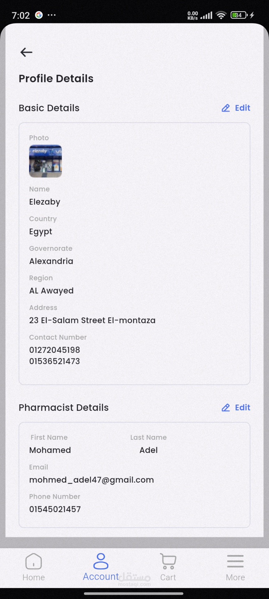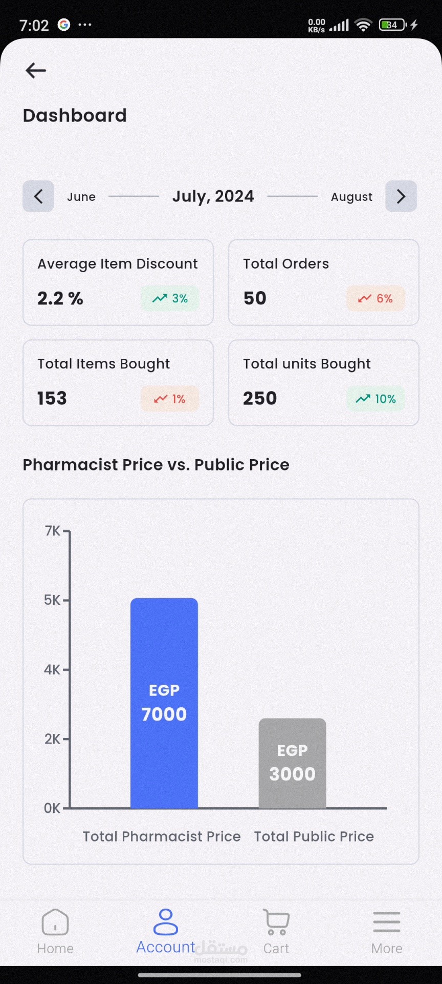 تصميم واجهات تطبيق صيدلة متكامل باستخدام Flutter، يتيح للمستخدمين (الصيادلة أو العملاء) تصفح الأدوية والمنتجات وشرائها من المخازن بسهولة. يشمل التصميم Dashboard لعرض إحصائيات الشراء، بالإضافة إلى نظام فواتير واضح لتتبع الطلبات والمدفوعات، مع التركيز على تجربة مستخدم.