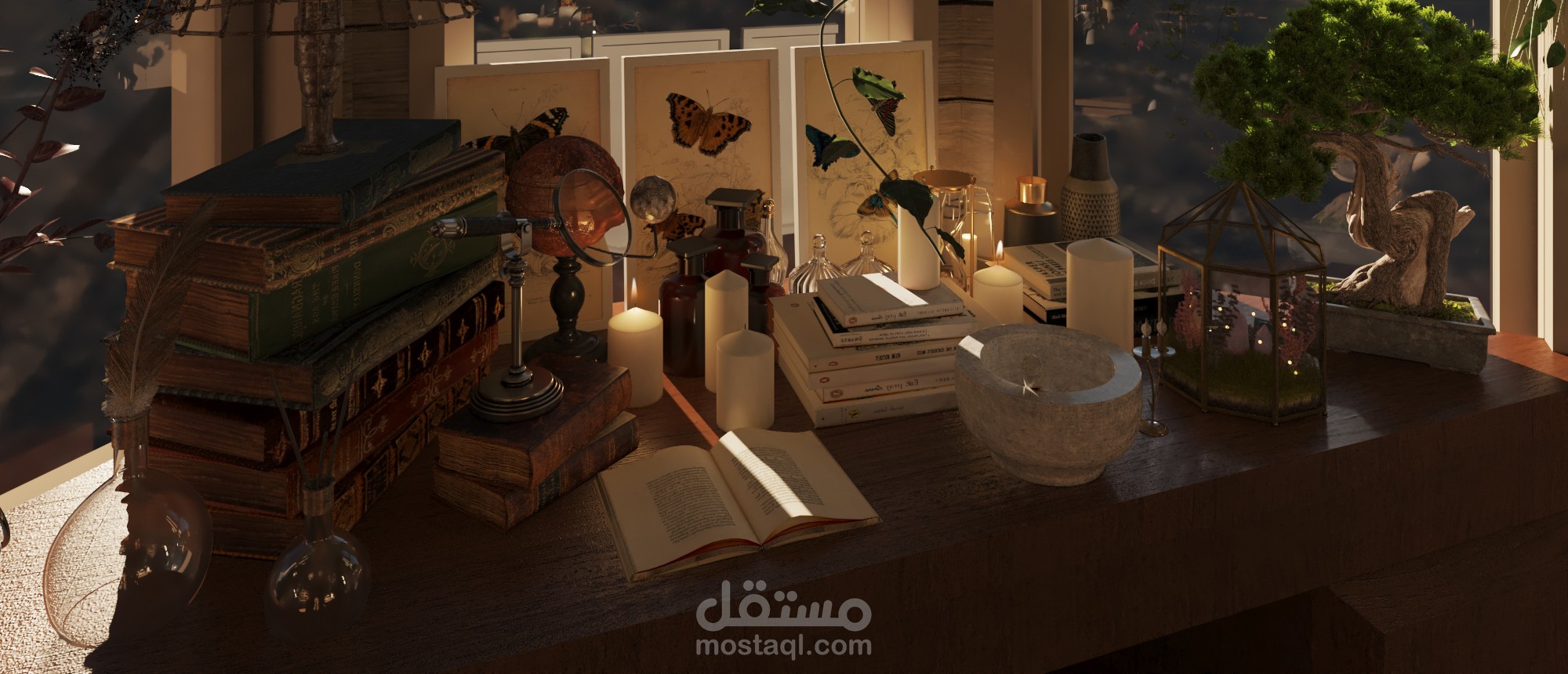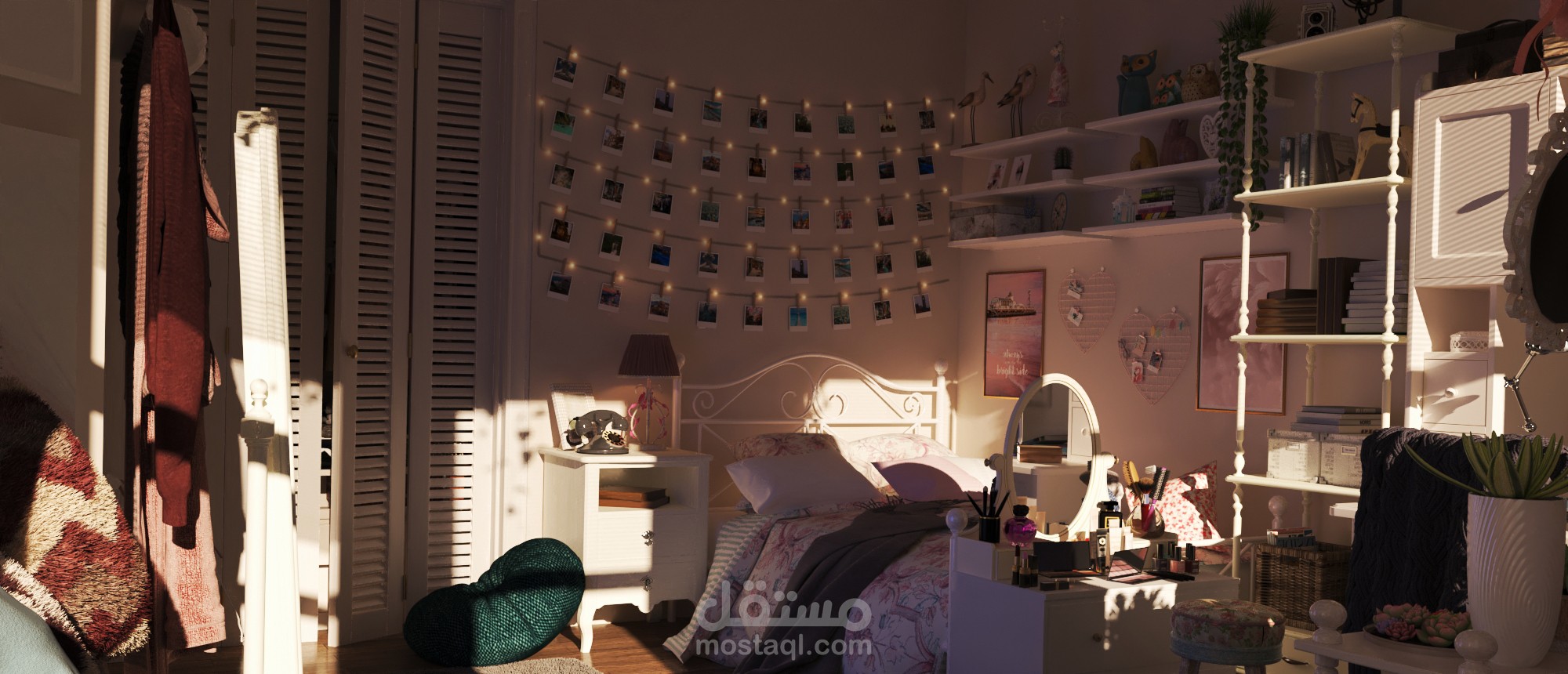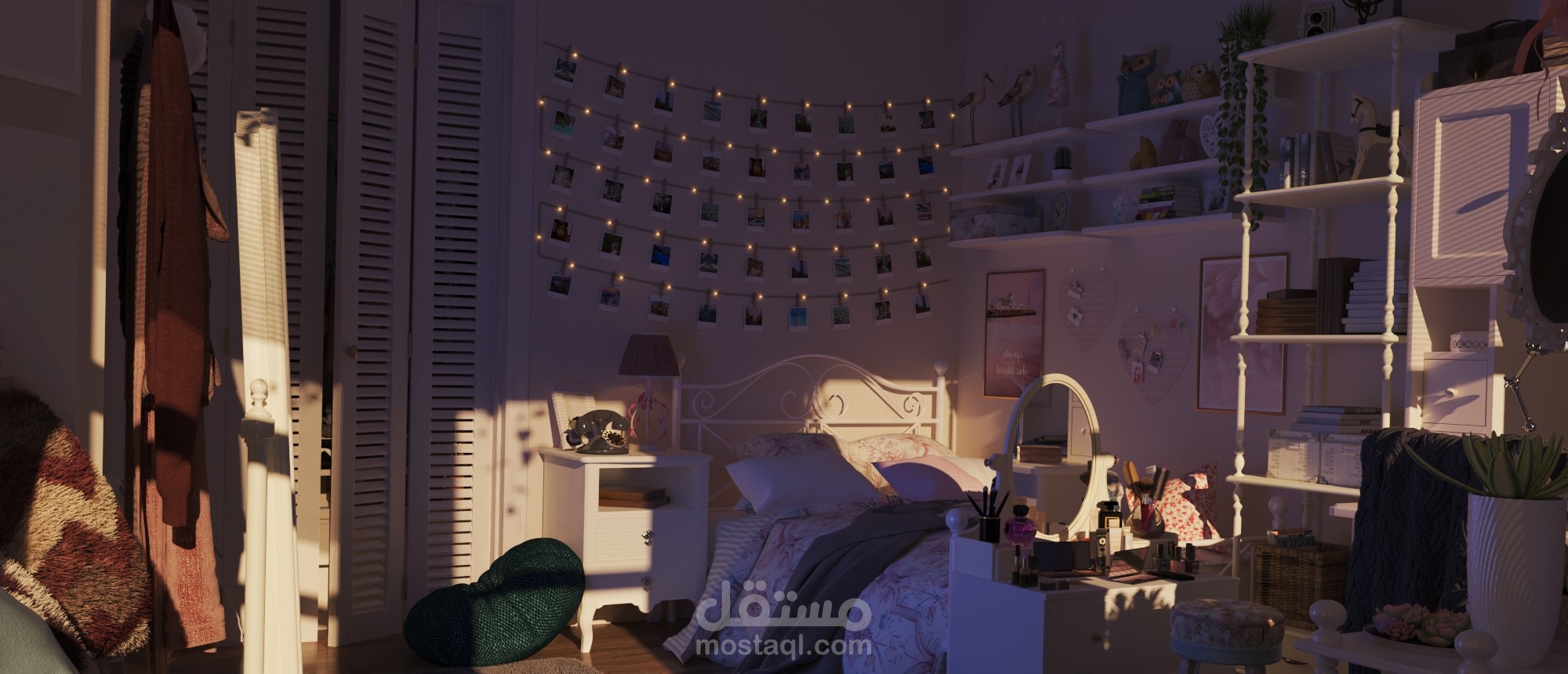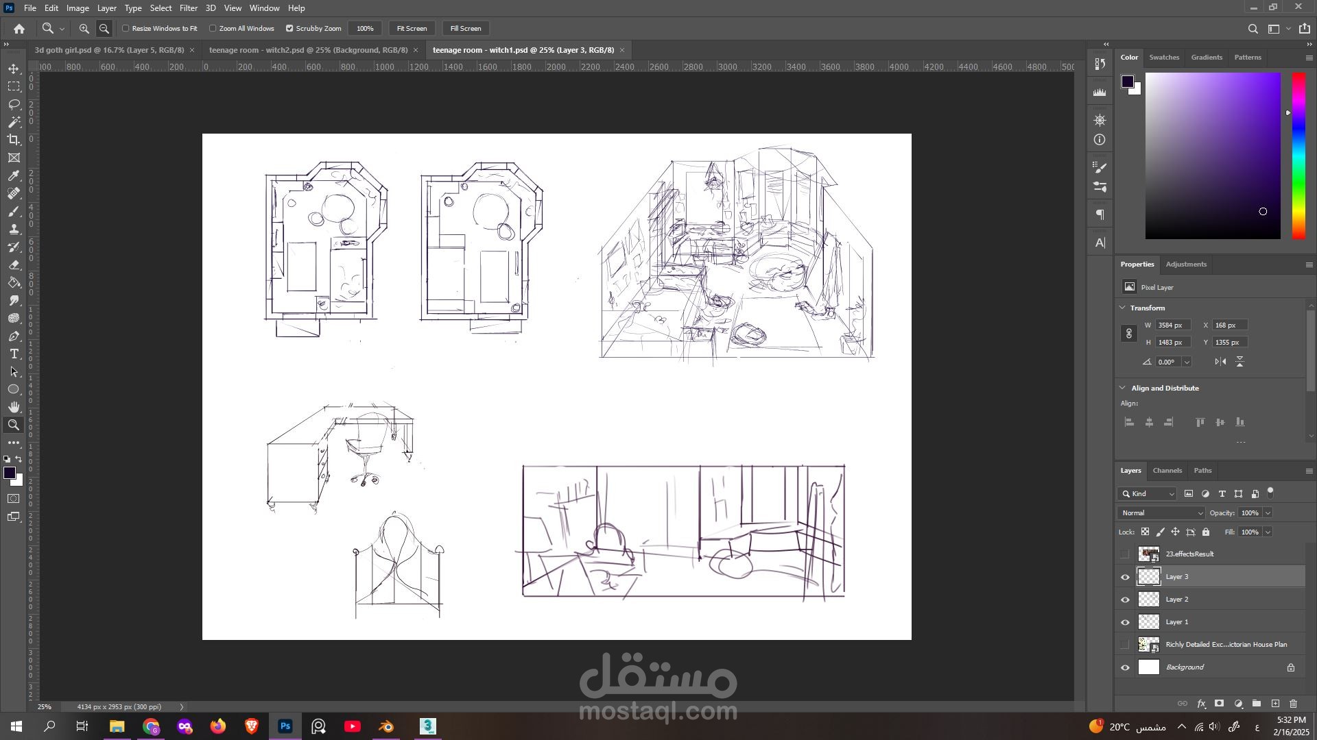 مع سكتشات اولية للمشروع على برنامج الفوتوشوب وتعديلات على الصور النهائية بعد ال render