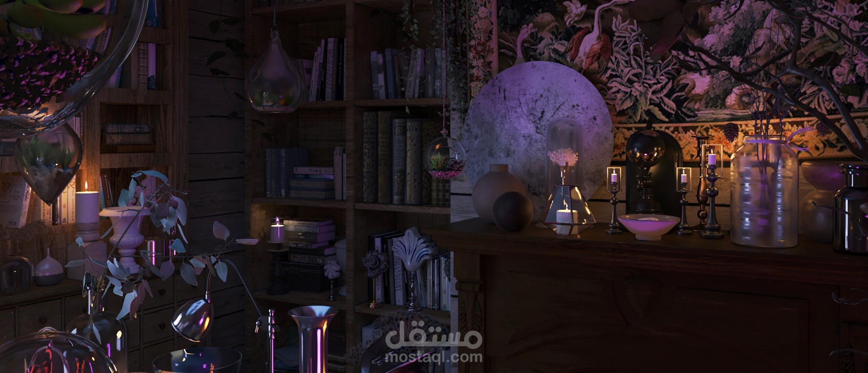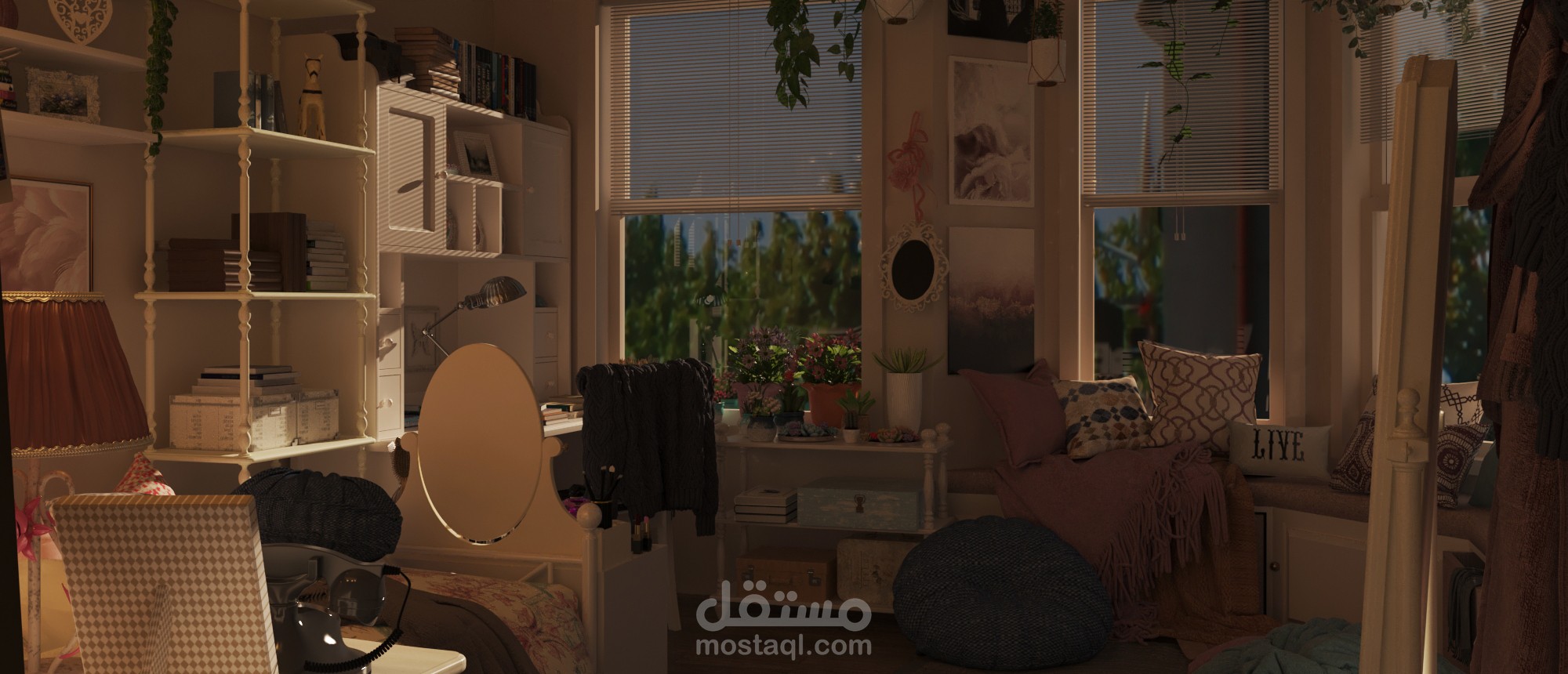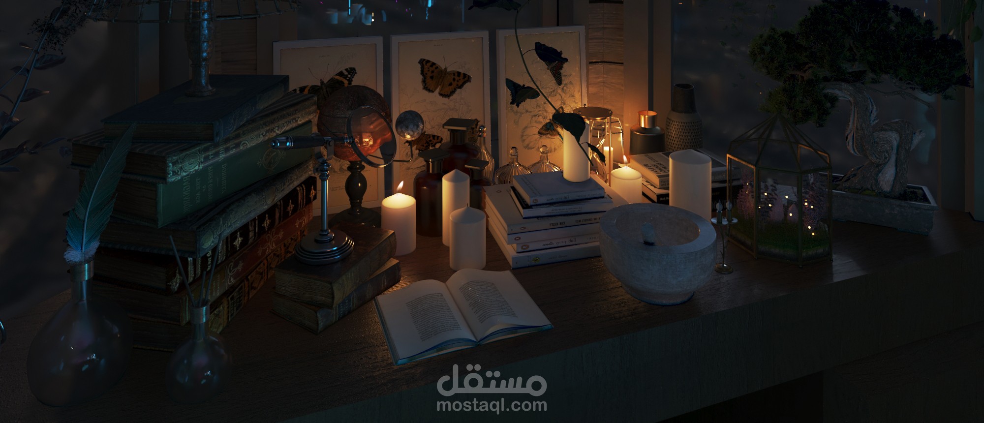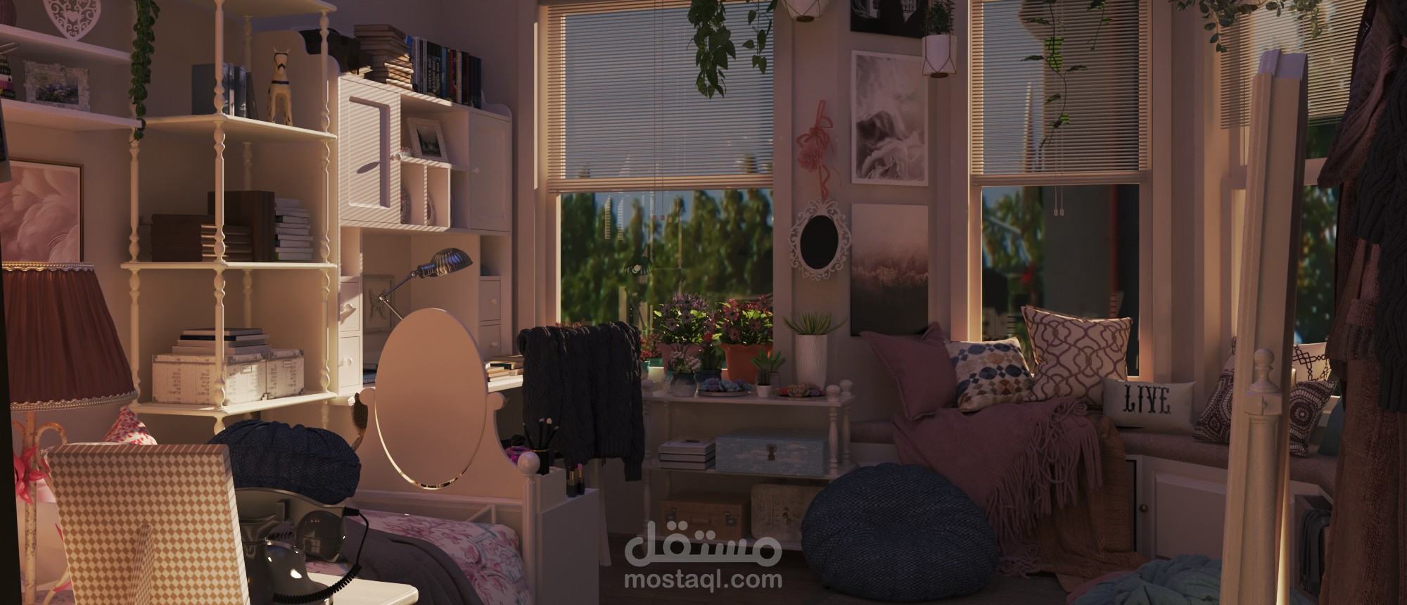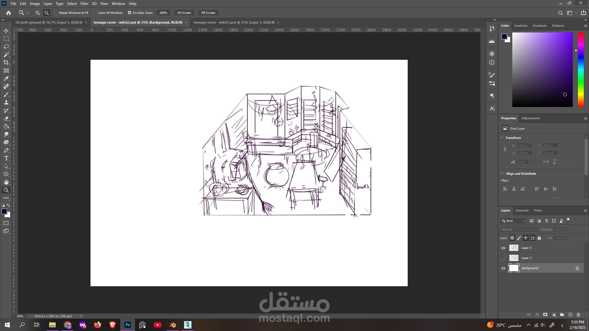 مع سكتشات اولية للمشروع على برنامج الفوتوشوب وتعديلات على الصور النهائية بعد ال render